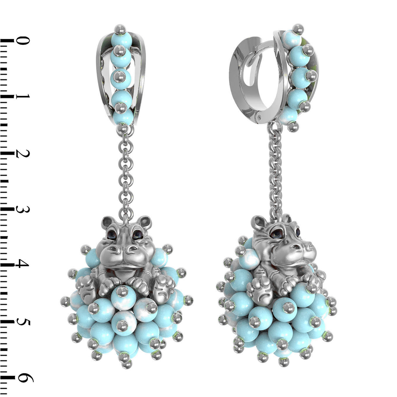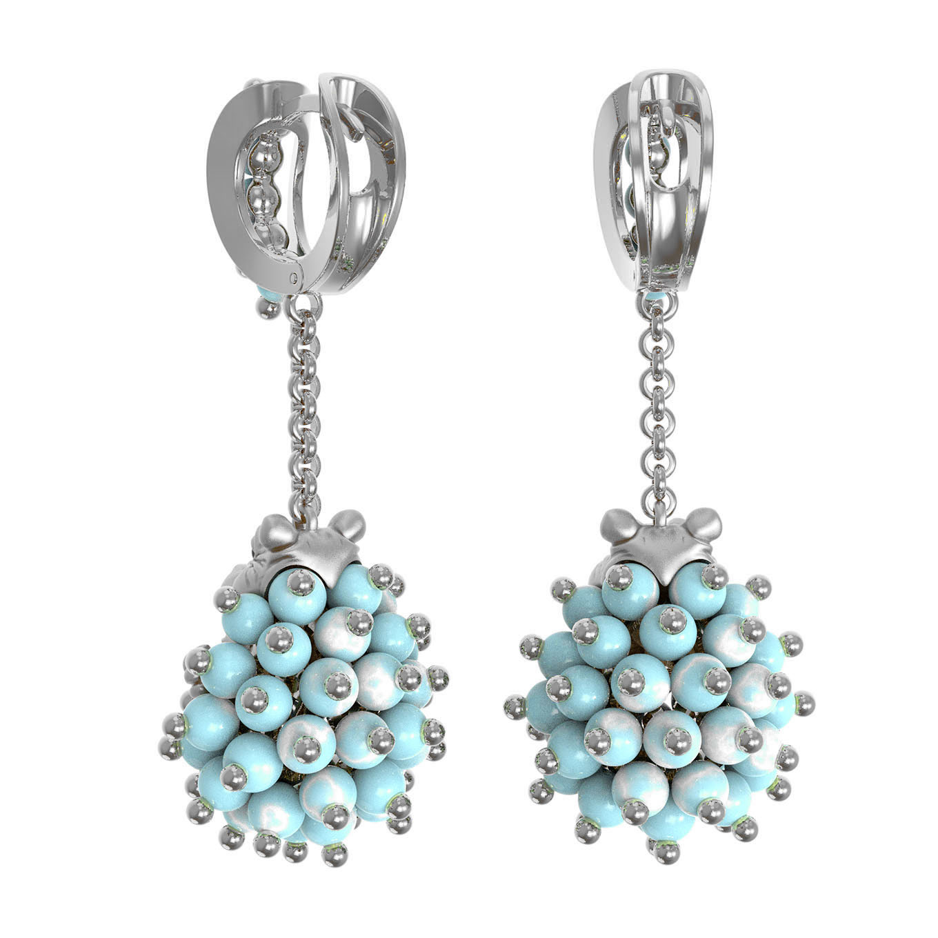 Серьги из белого золота c эмаль и бирюзой