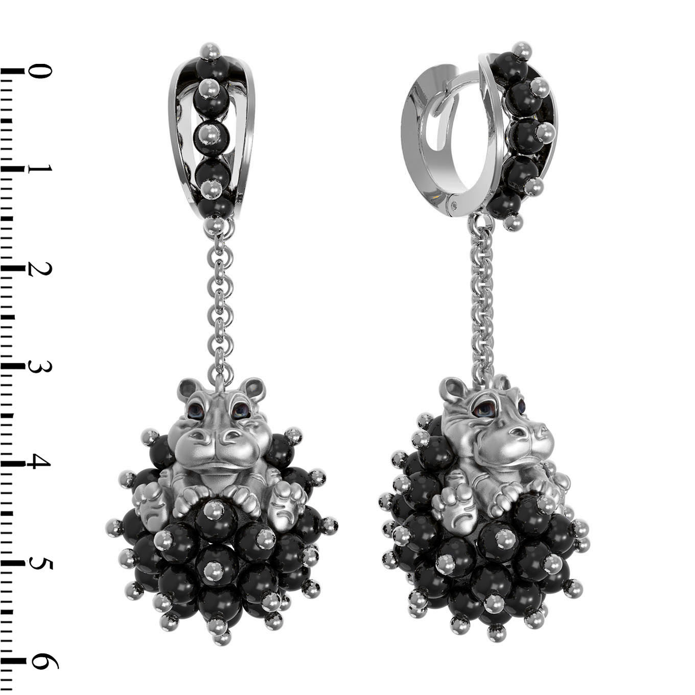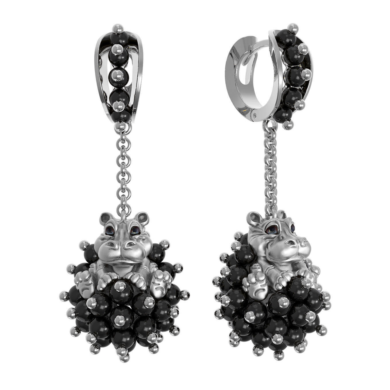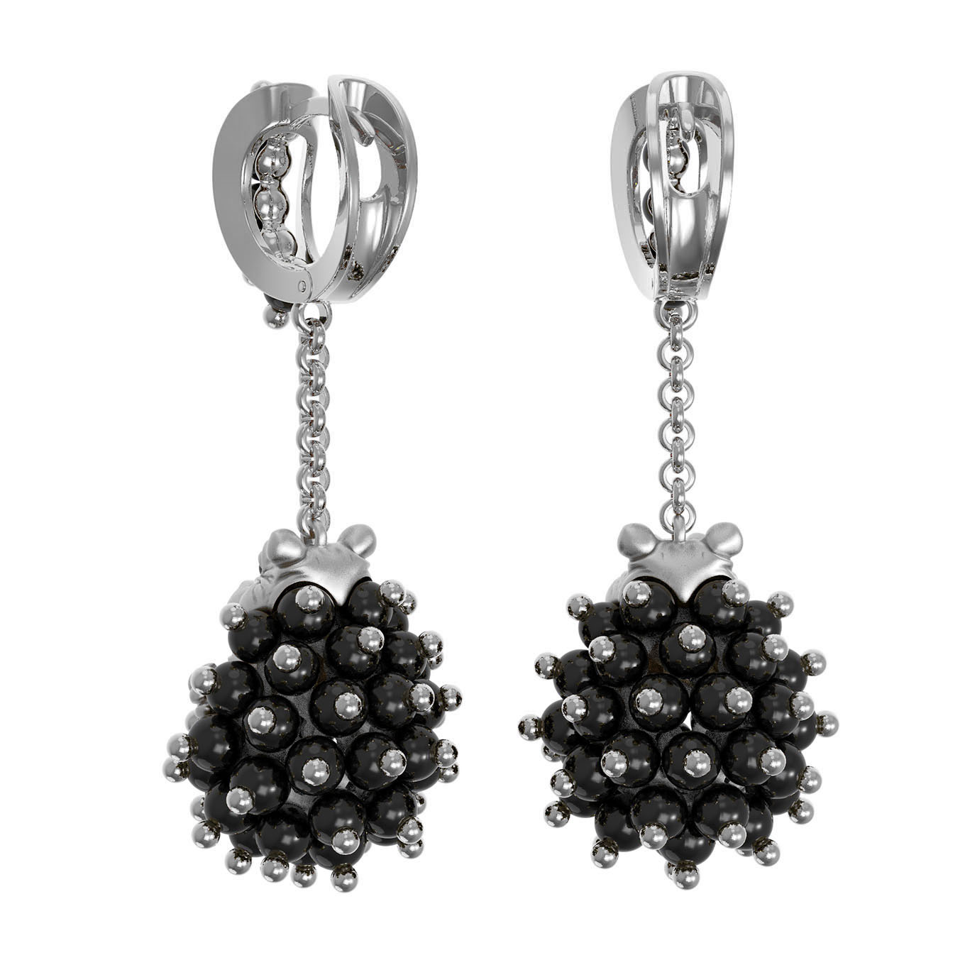 Серьги из белого золота c эмаль и ониксом