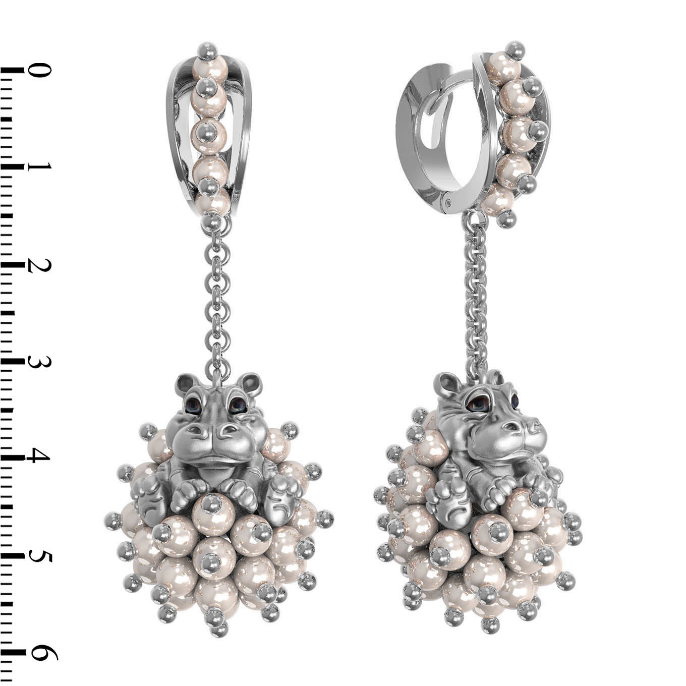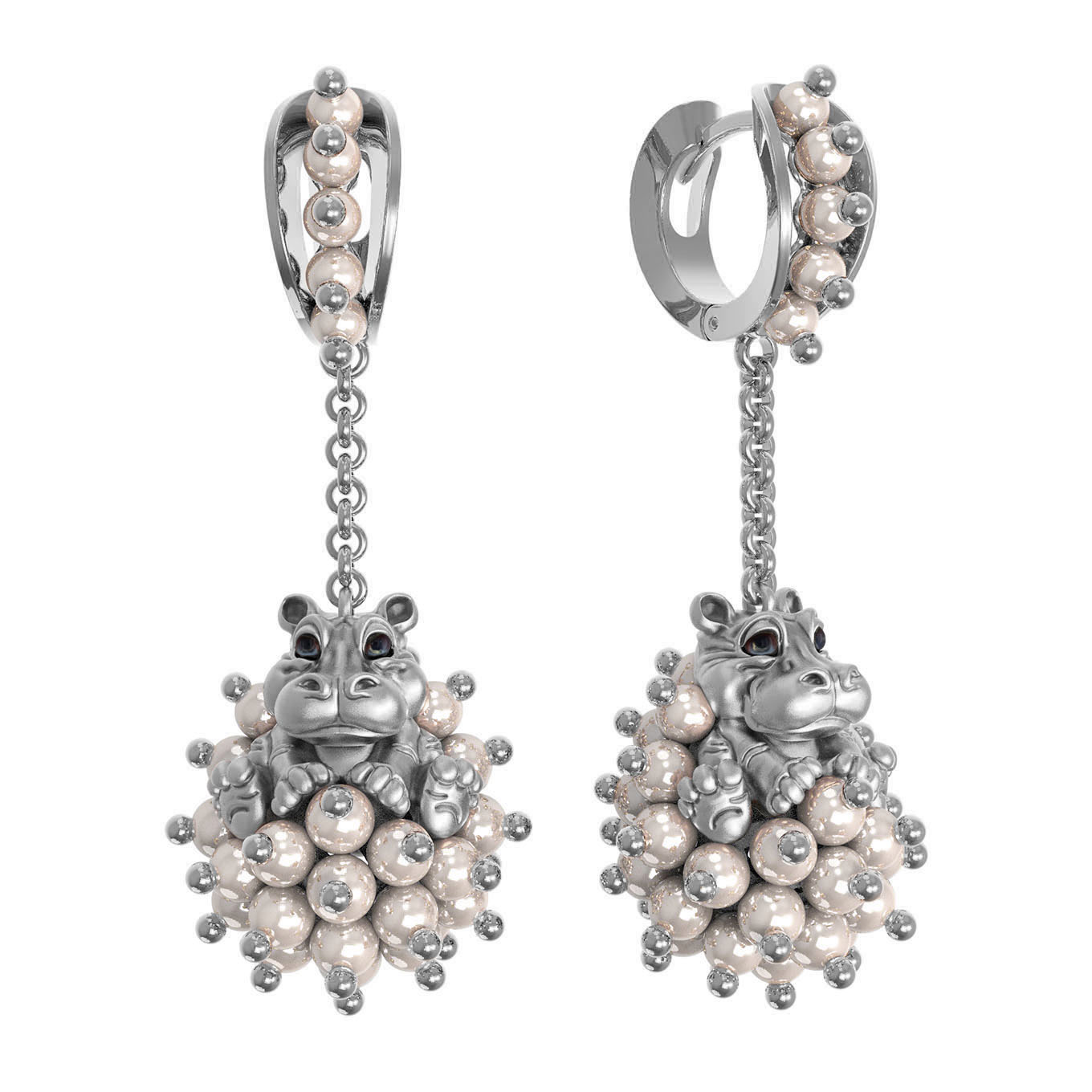 Серьги из белого золота c эмаль и жемчугом