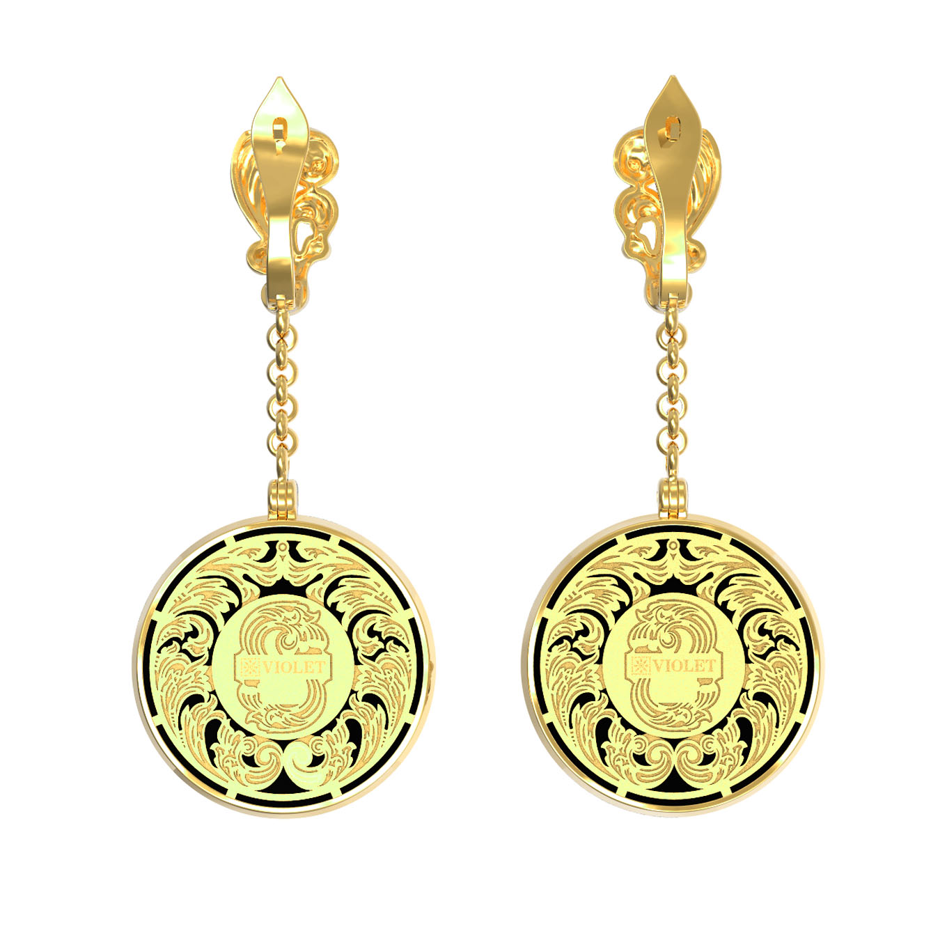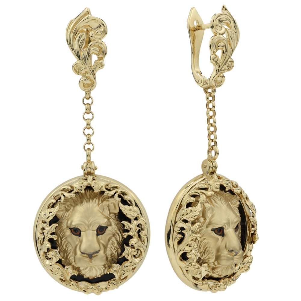 Серьги из лимонного золота c эмаль и ониксом