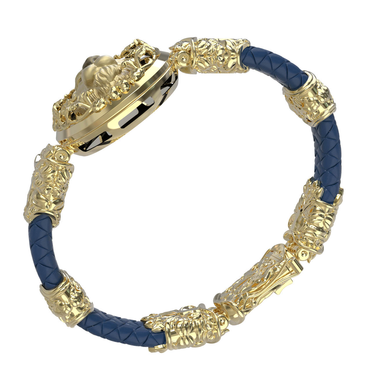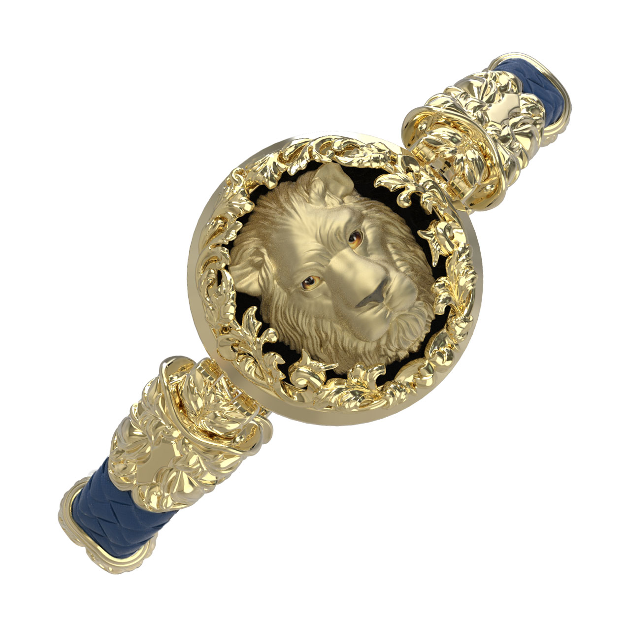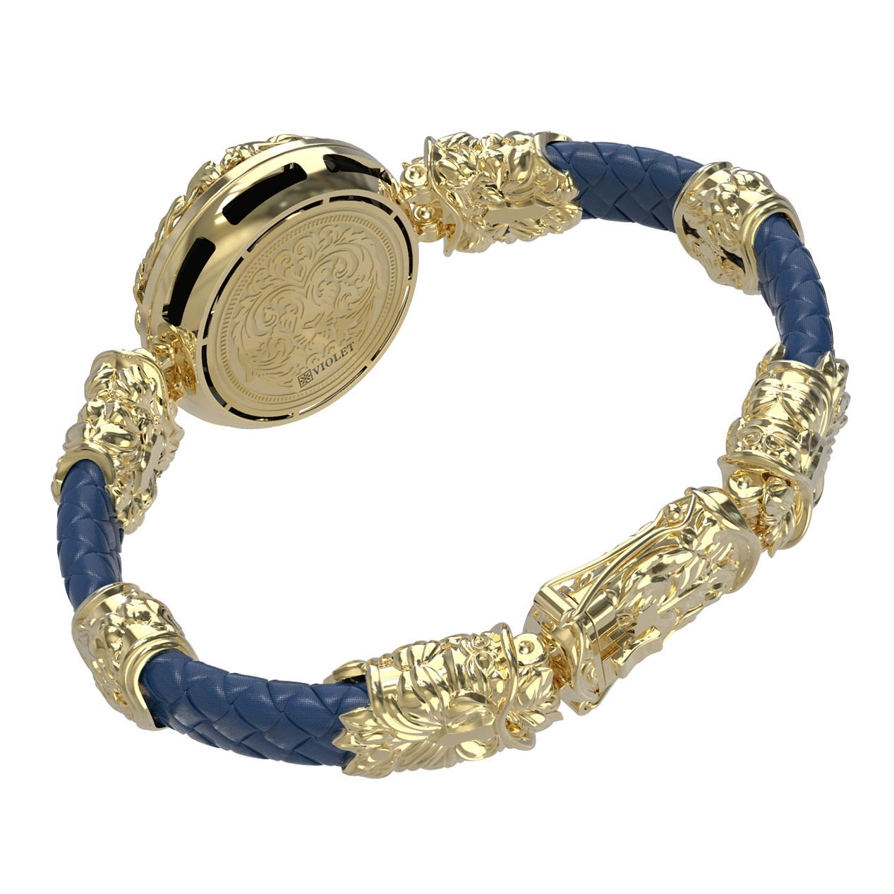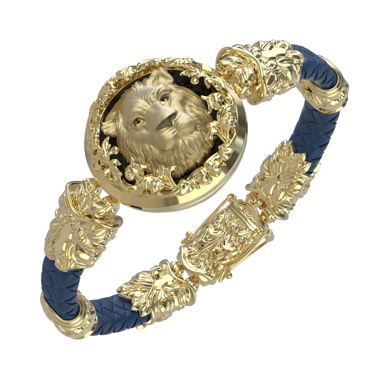 Браслет из лимонного золота c эмаль, кожаным шнурком и ониксом