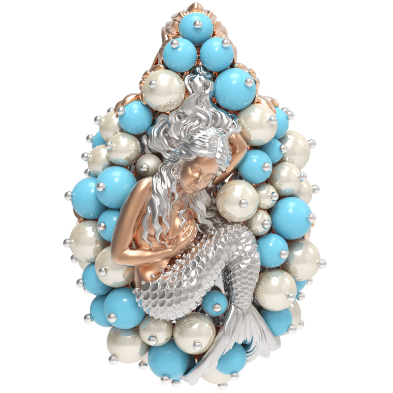 Подвеска из золота c жемчугом и бирюзой