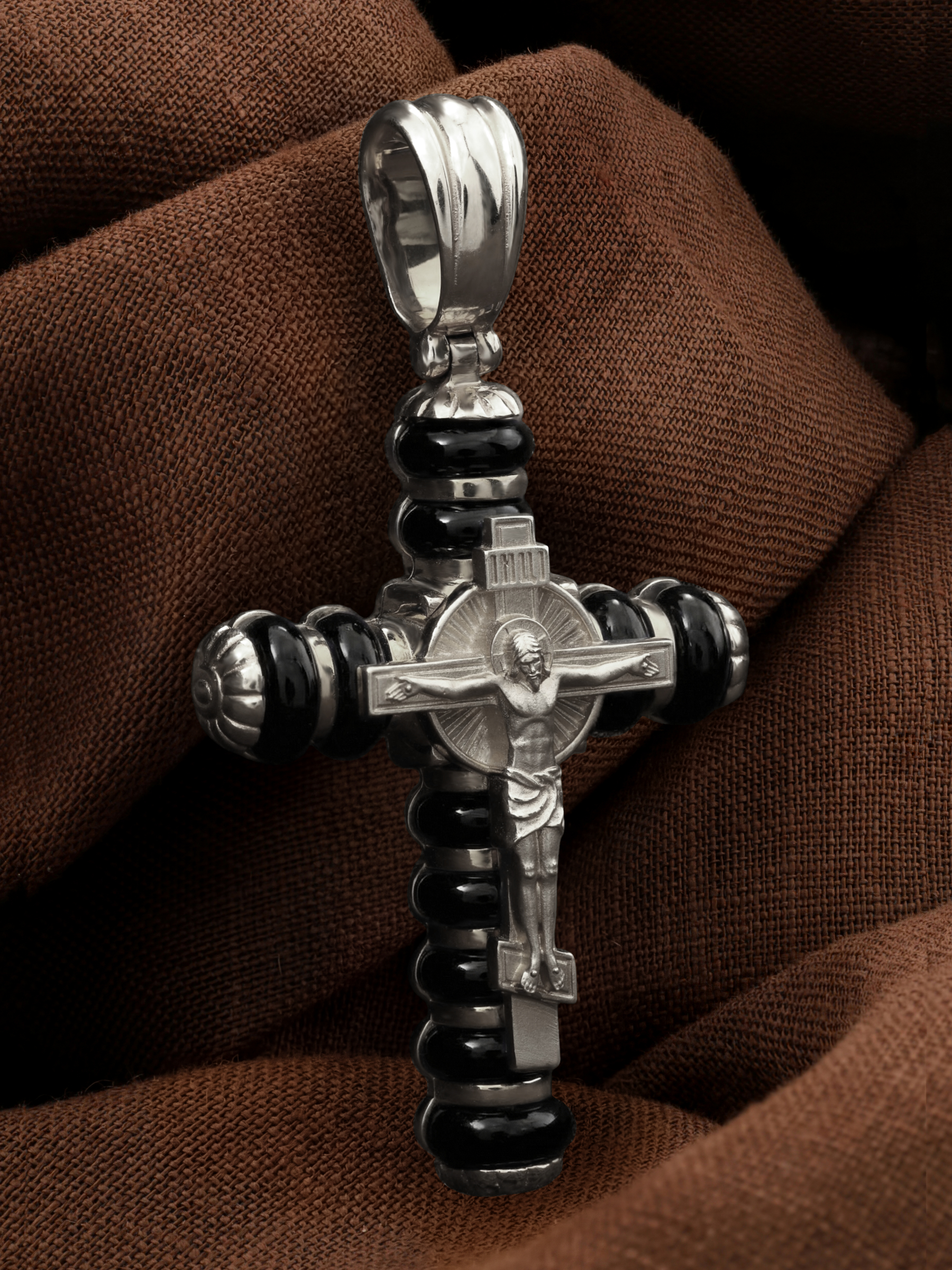 Крест из белого золота c ониксом