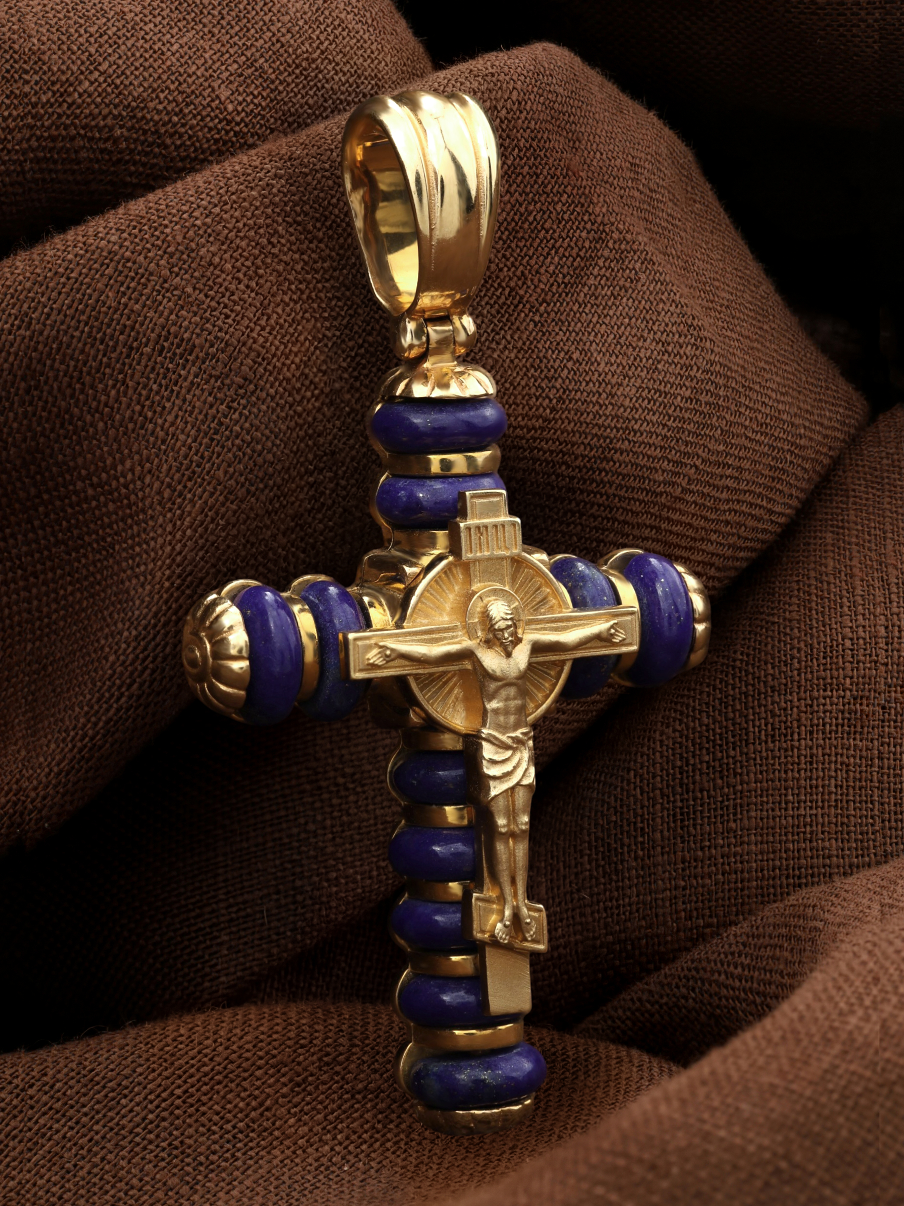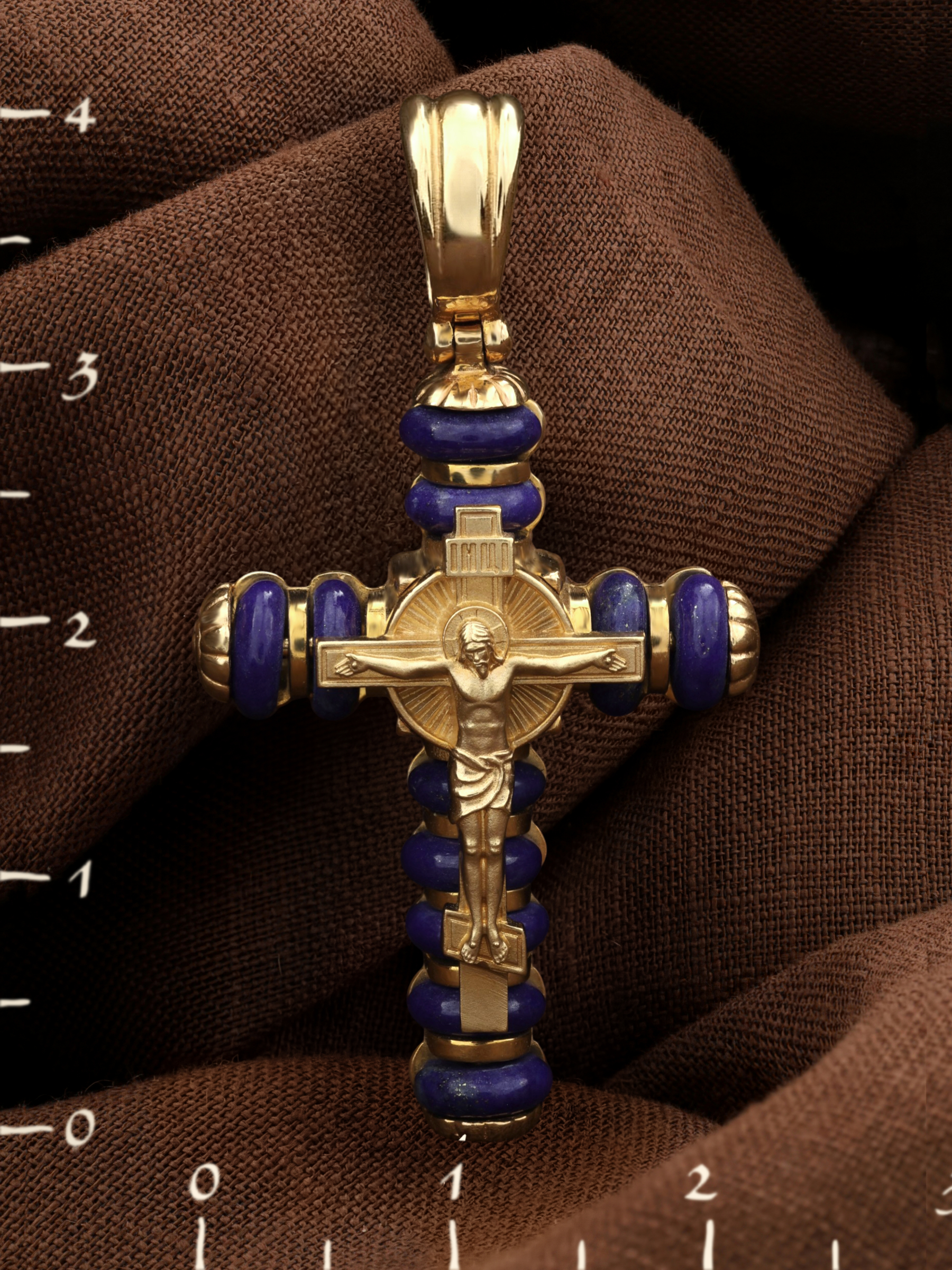 На лицевой стороне креста изображено Распятие Господа и Спасителя нашего Иисуса Христа, отдавшего Себя на смерть для искупления грехов мира. Крест является символом жертвенной любви Всеблагого Бога к падшим людям, всепобеждающим духовным оружием христиан, основанием и средоточием церковной жизни. Над вершиной Распятия помещена надпись «Царь Славы». На верхней перекладине расположена надпись «IНЦI». Она символизирует титло — табличку, на которой, согласно Евангелию, было начертано: Иисус Назорей, Царь Иудейский. Надпись «IC» «ХC»», означает Иисус Христос, помещаются на разных сторонах поперечной перекладины креста. Ниже помещена надпись «НИКА», что означает «победитель».