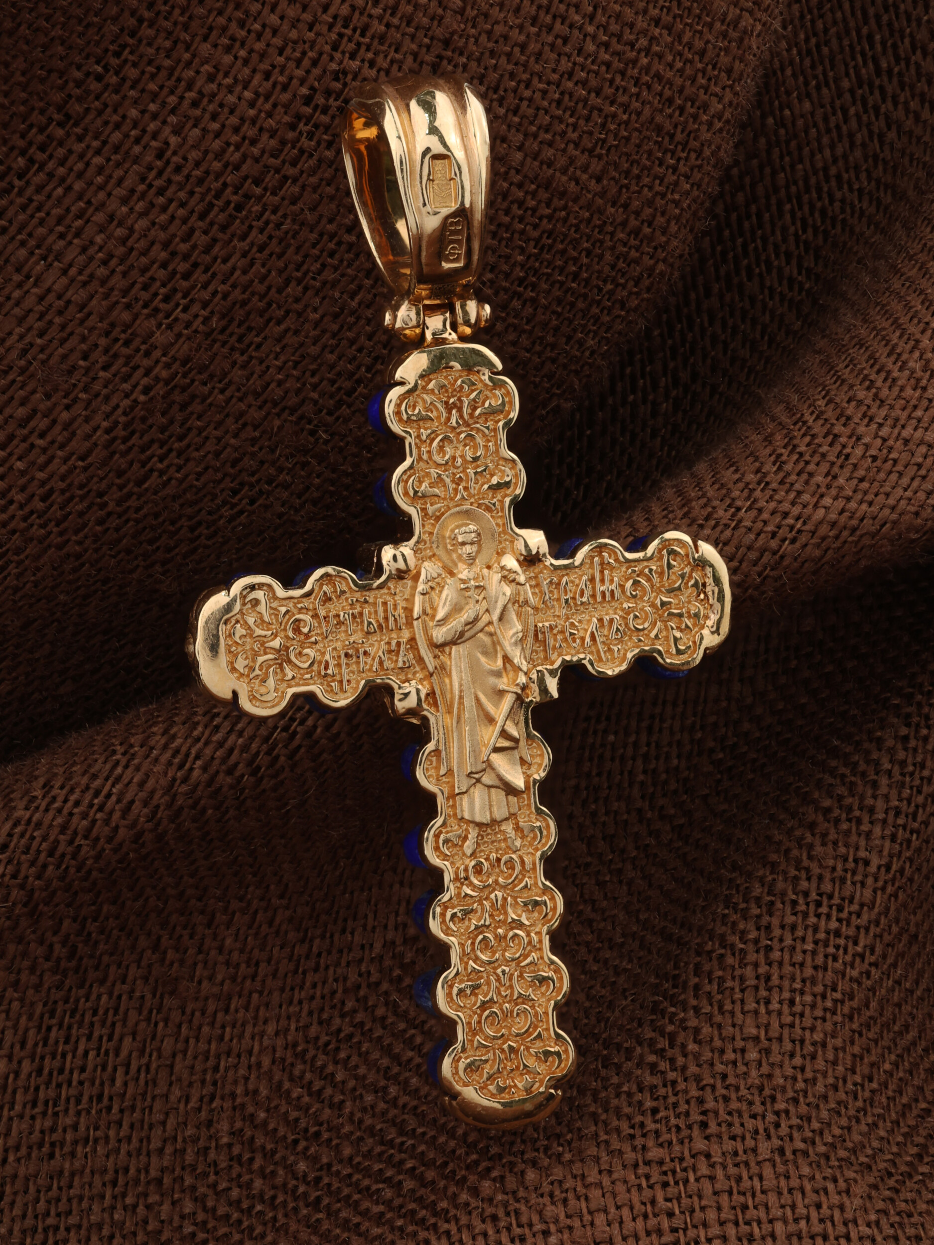 На оборотной стороне креста изображен святой Ангел-Хранитель в виде прекрасного юноши держащего в правой руке крест, а в левой — сферу. Ангел-Хранитель — это Ангел приставляемый Богом к человеку при крещении для охраны и помощи в добрых делах. Невидимо пребывая при нас постоянно, он, руководствуя нас ко спасению, не только по нашему желанию таинственно наставляет нас на все доброе и полезное, не только возносит наши молитвы к Богу, но еще и сам от себя охраняют и защищают нас от врагов видимых и невидимых, ходатайствует за нас пред Богом.