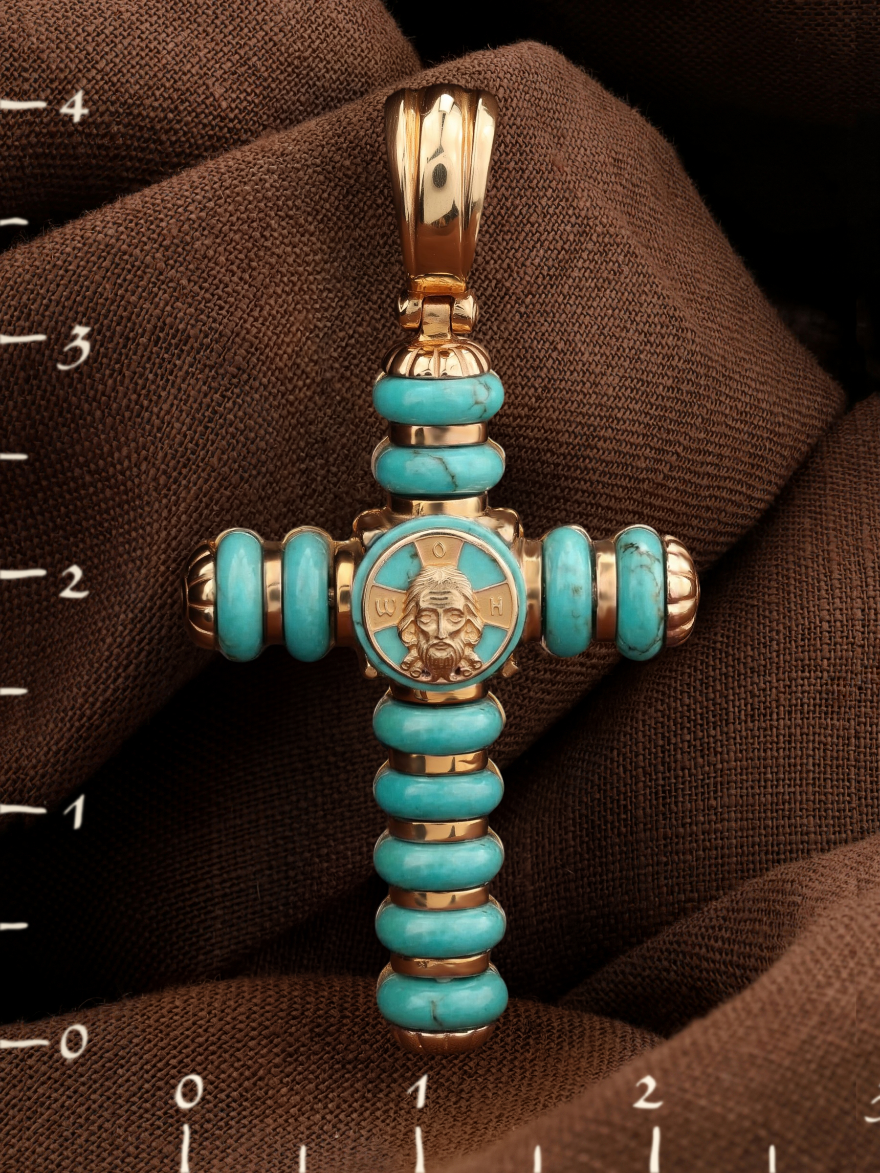 Крест из золота c бирюзой