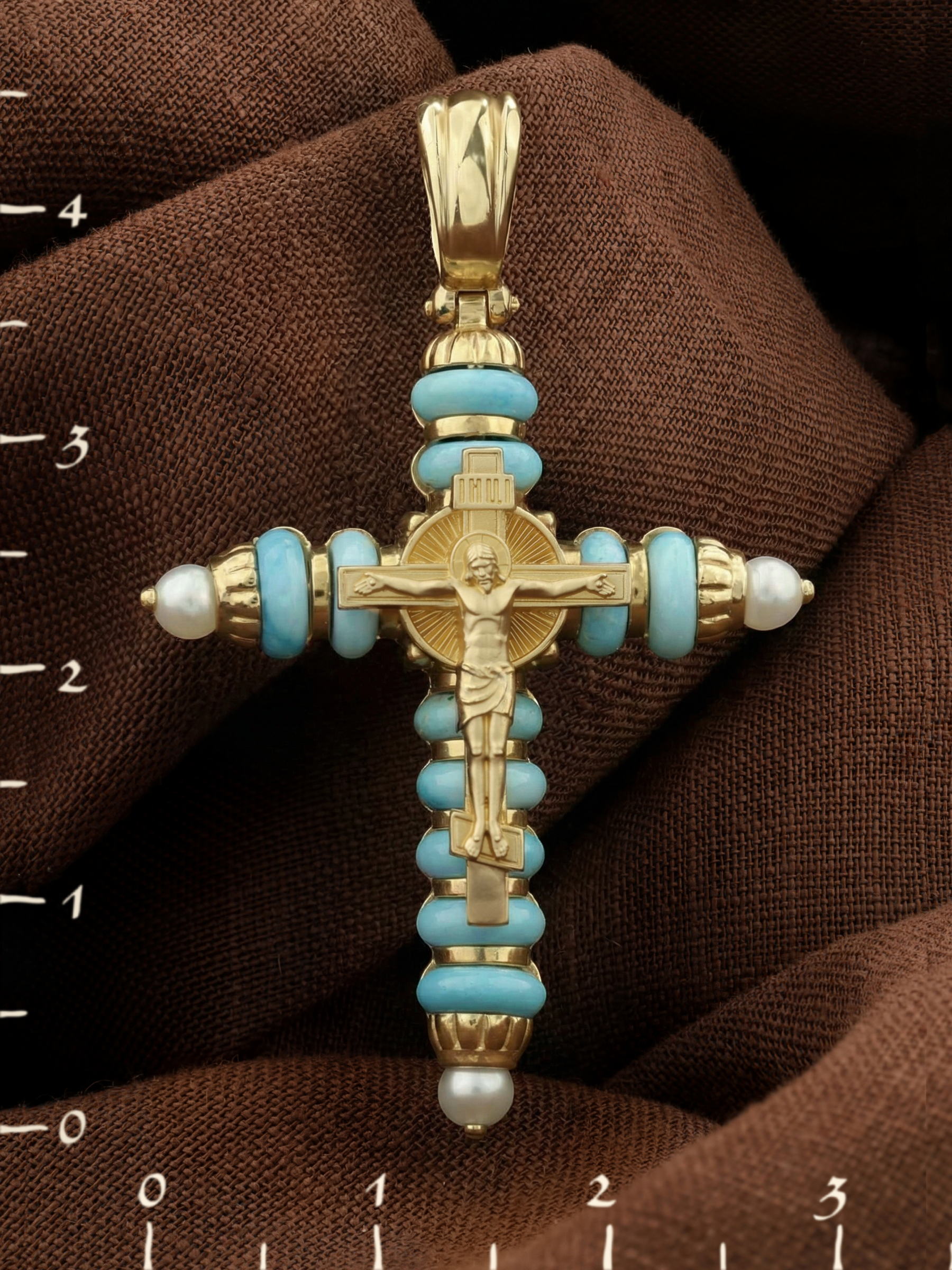 На лицевой стороне креста изображено Распятие Господа и Спасителя нашего Иисуса Христа, отдавшего Себя на смерть для искупления грехов мира. Крест является символом жертвенной любви Всеблагого Бога к падшим людям, всепобеждающим духовным оружием христиан, основанием и средоточием церковной жизни. Над вершиной Распятия помещена надпись «Царь Славы». На верхней перекладине расположена надпись «IНЦI». Она символизирует титло — табличку, на которой, согласно Евангелию, было начертано: Иисус Назорей, Царь Иудейский. Надпись «IC» «ХC»», означает Иисус Христос, помещаются на разных сторонах поперечной перекладины креста. Ниже помещена надпись «НИКА», что означает «победитель».