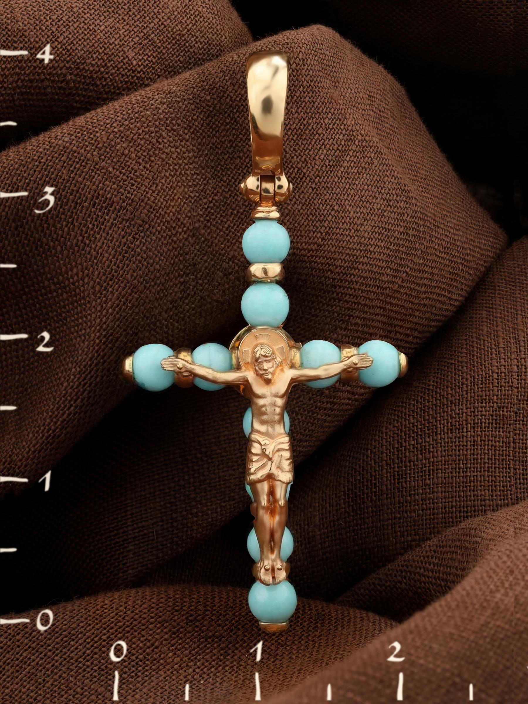 Крест из золота c бирюзой
