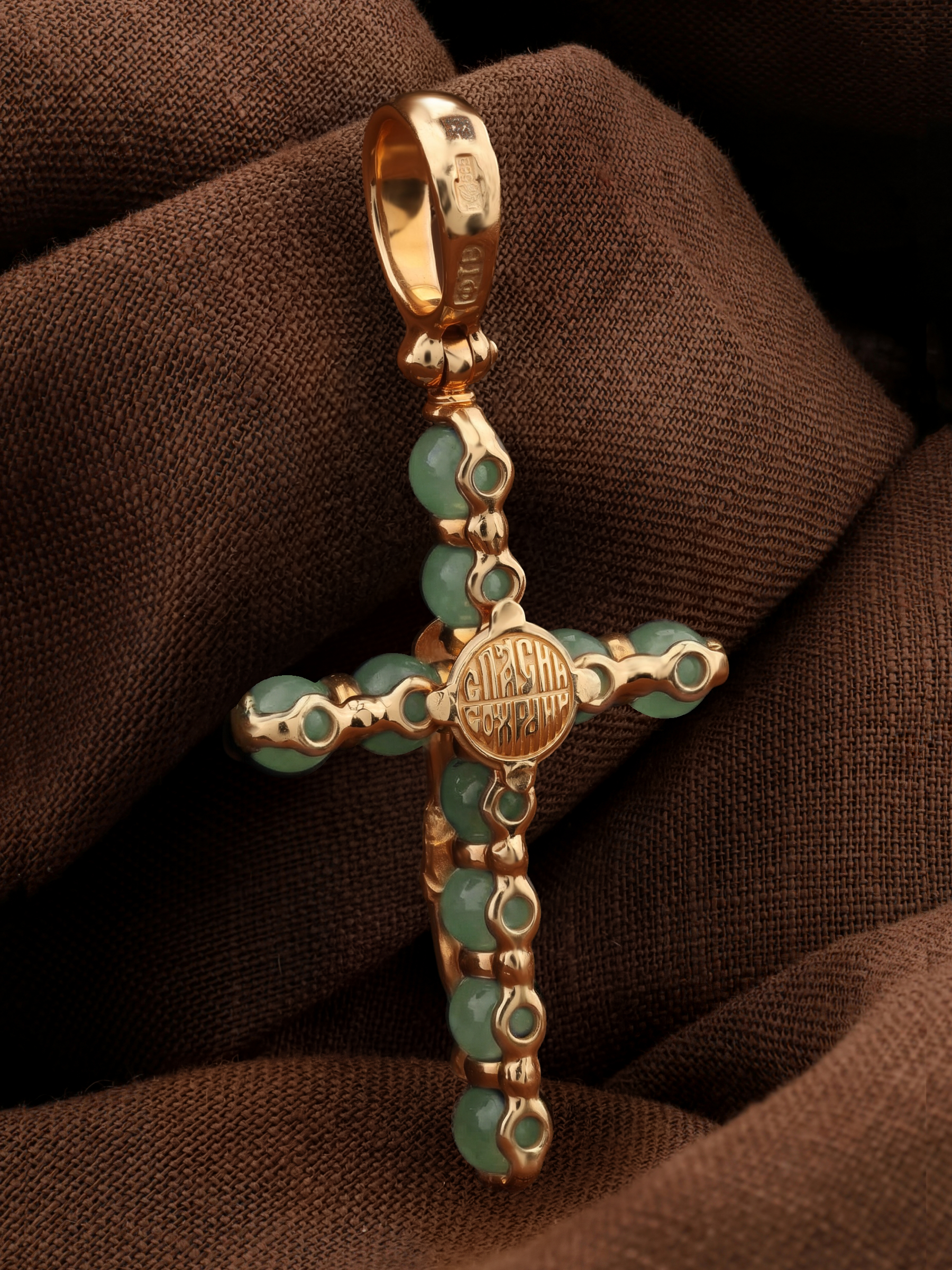 Крест из золота c нефритом