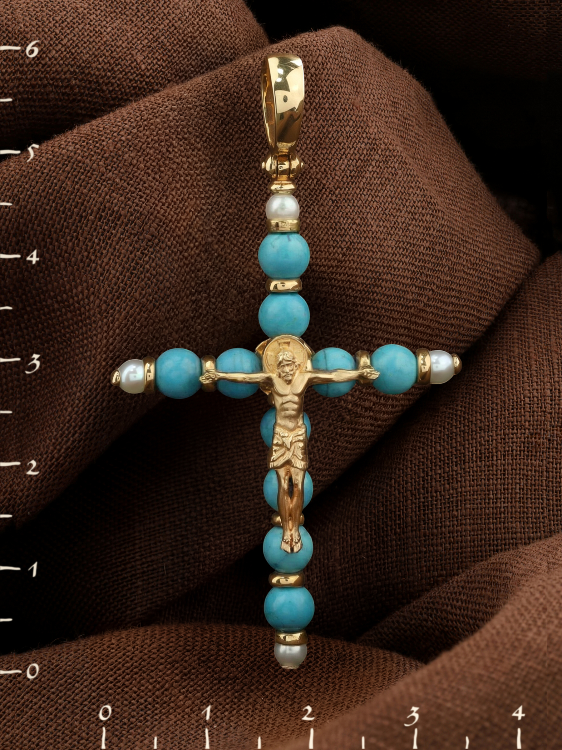 Крест из лимонного золота c жемчугом и бирюзой