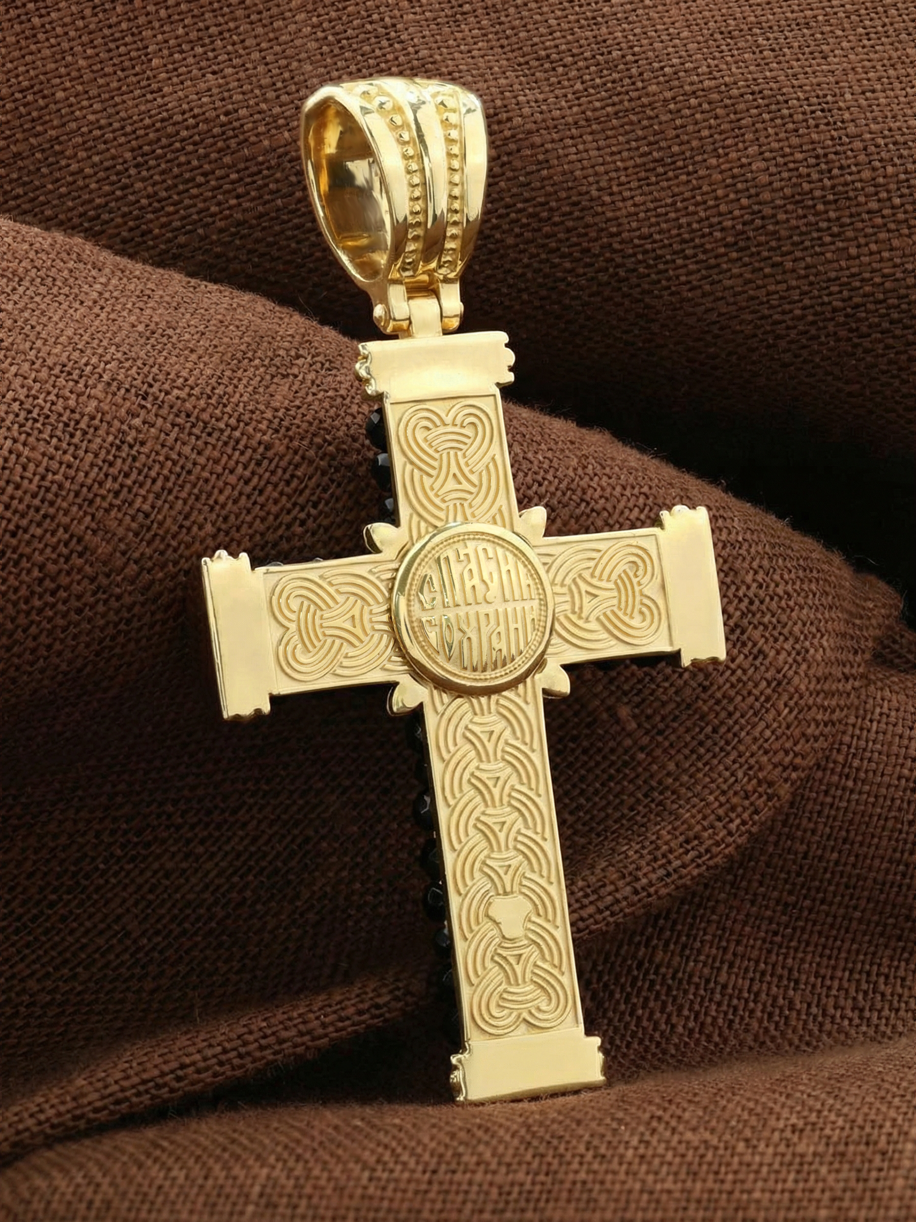 В центрально части оборотной стороны креста написана молитва: «Спаси и сохрани».
