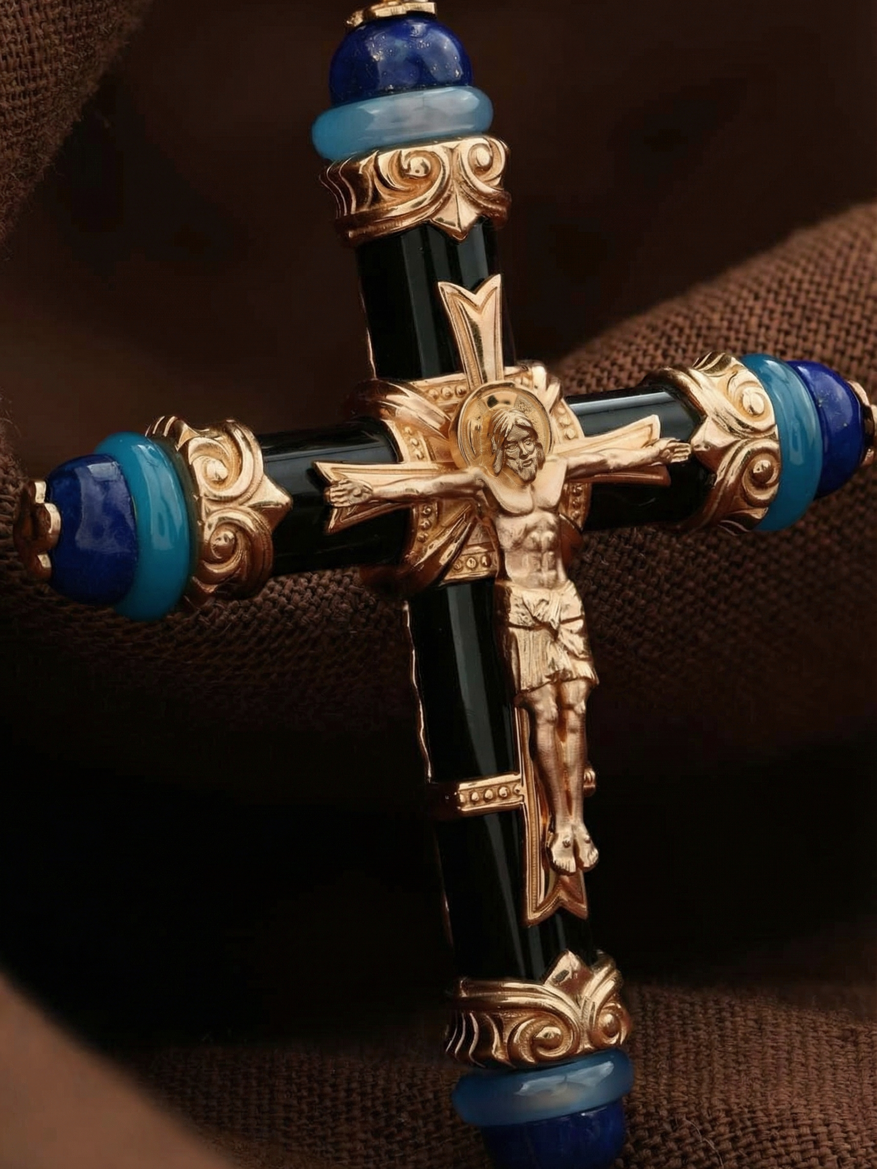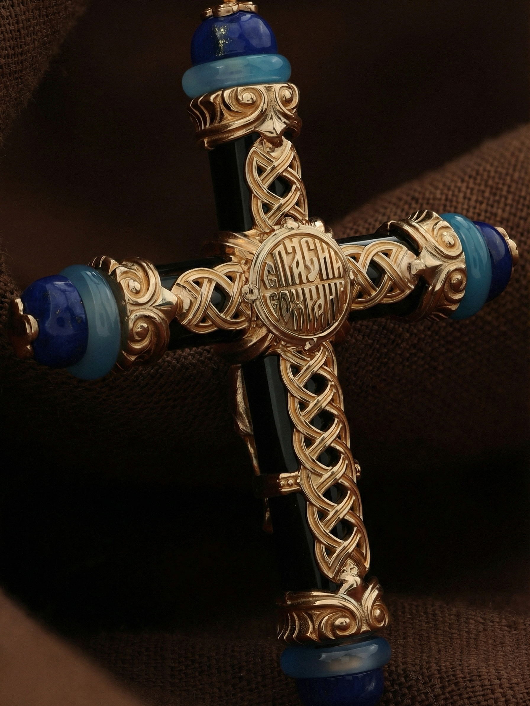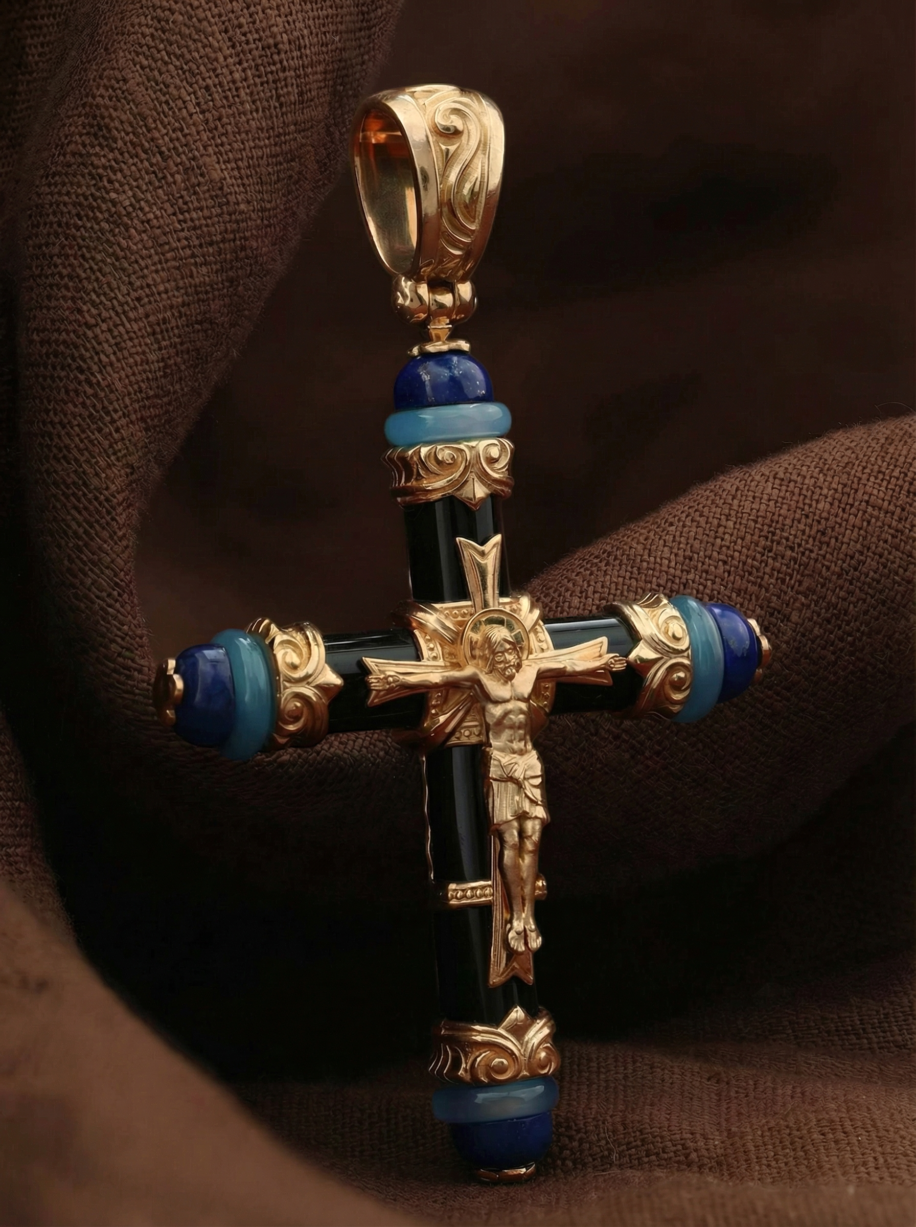 Крест из золота c ониксом, агатом и лазуритом