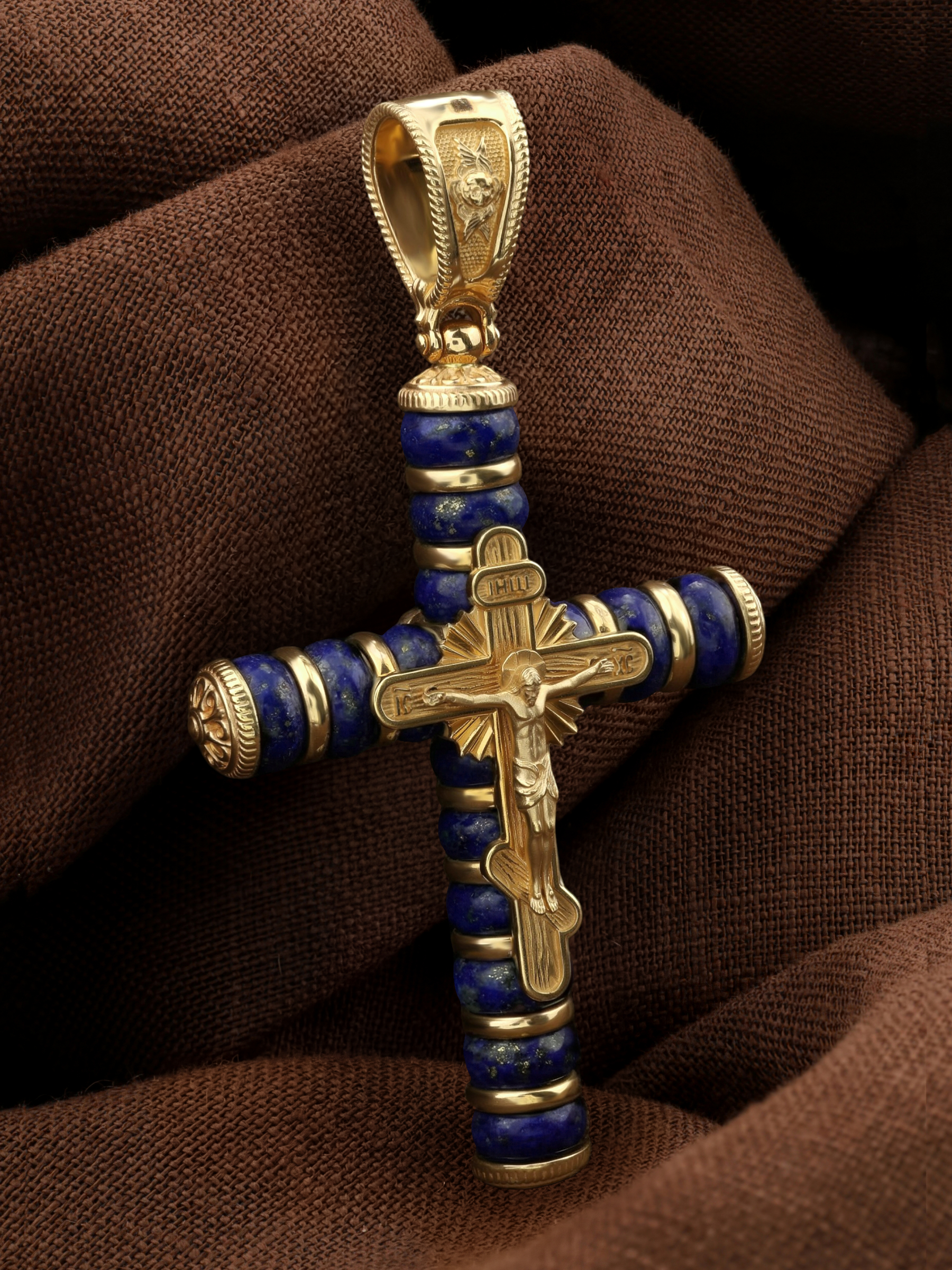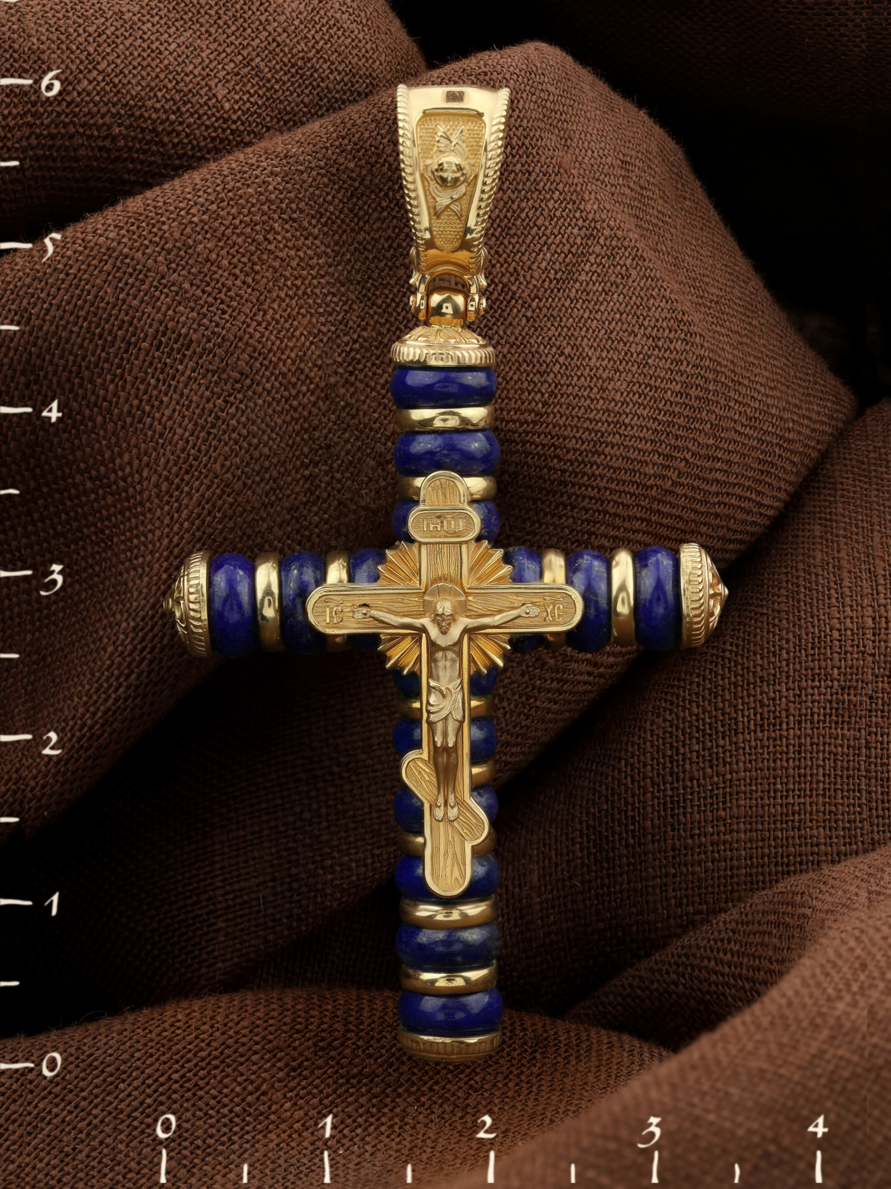 Крест из лимонного золота c лазуритом