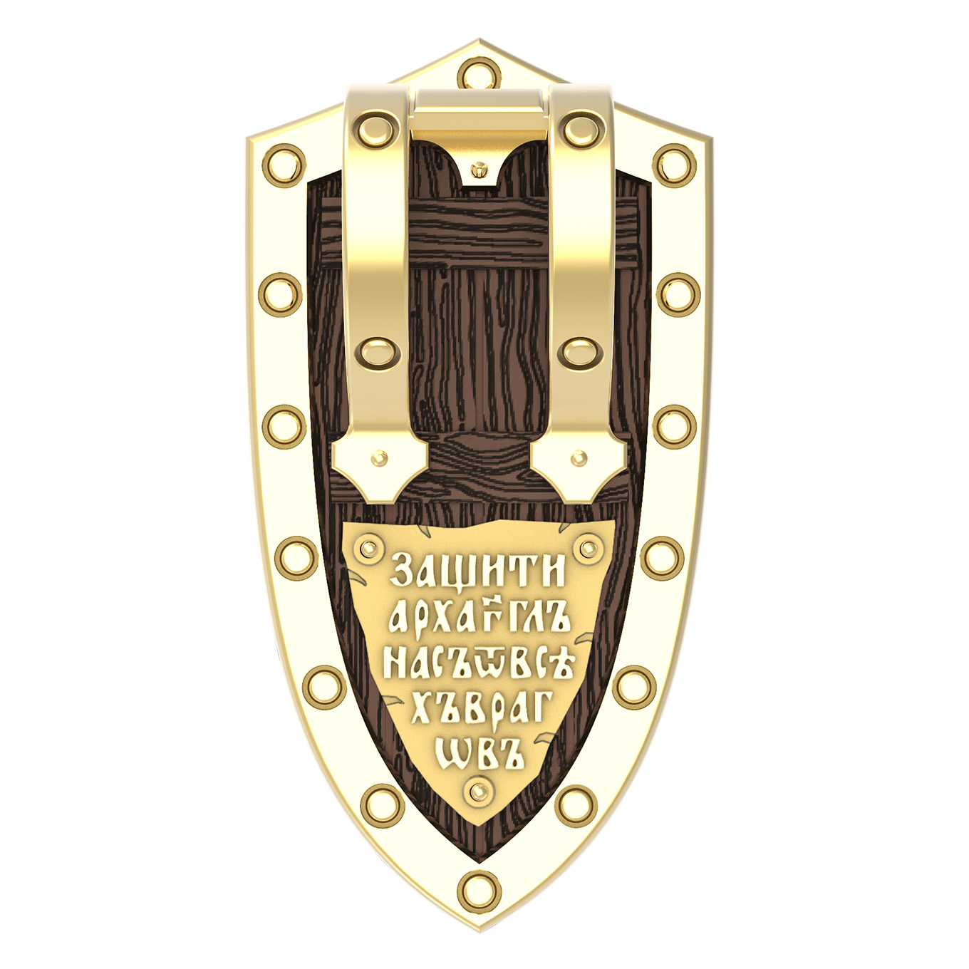 На оборотной стороне образка написаны слова молитвы: «Защити Архангел нас от всех врагов».
