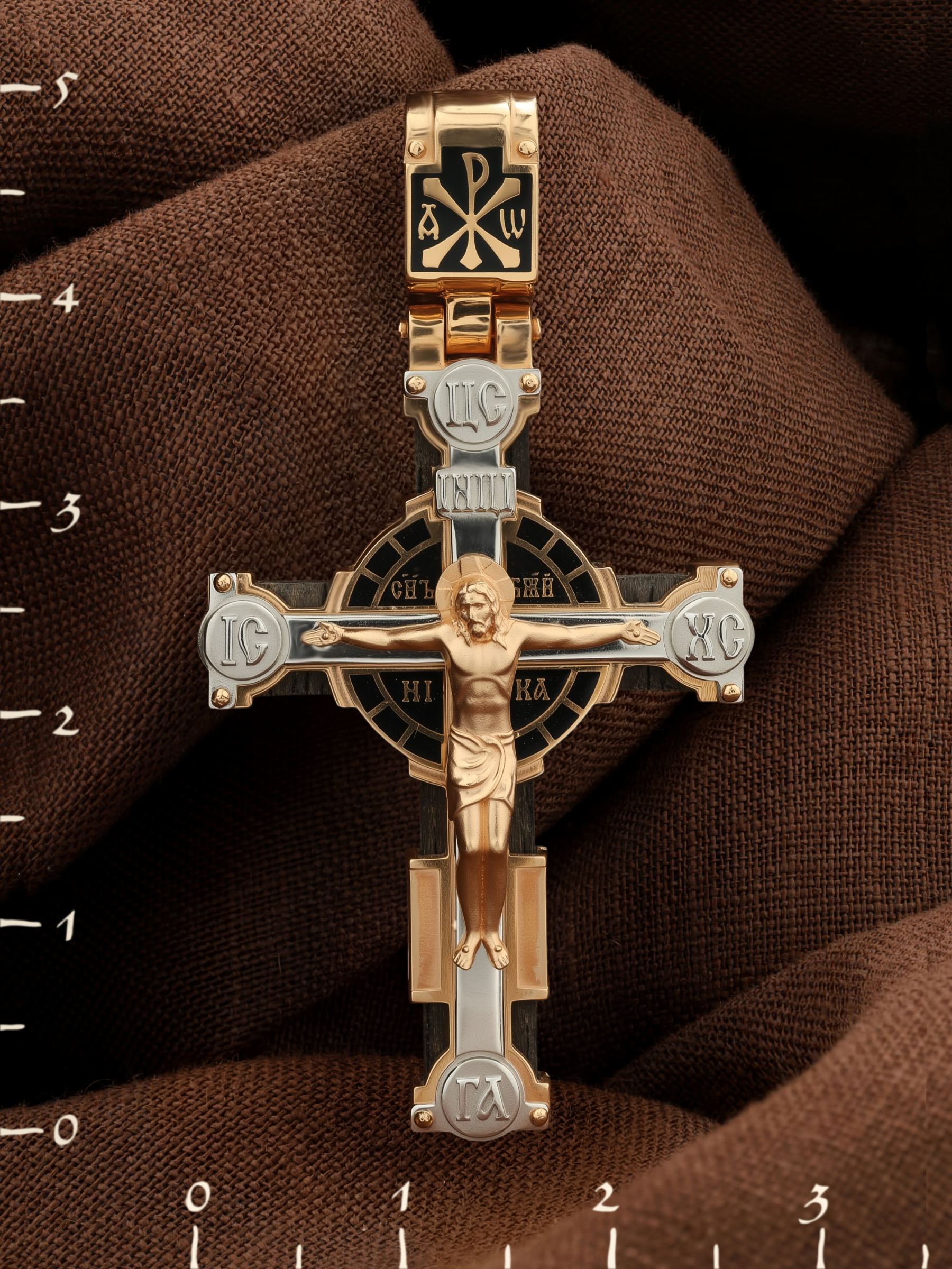 Крест из золота c эмаль и эбеновым деревом