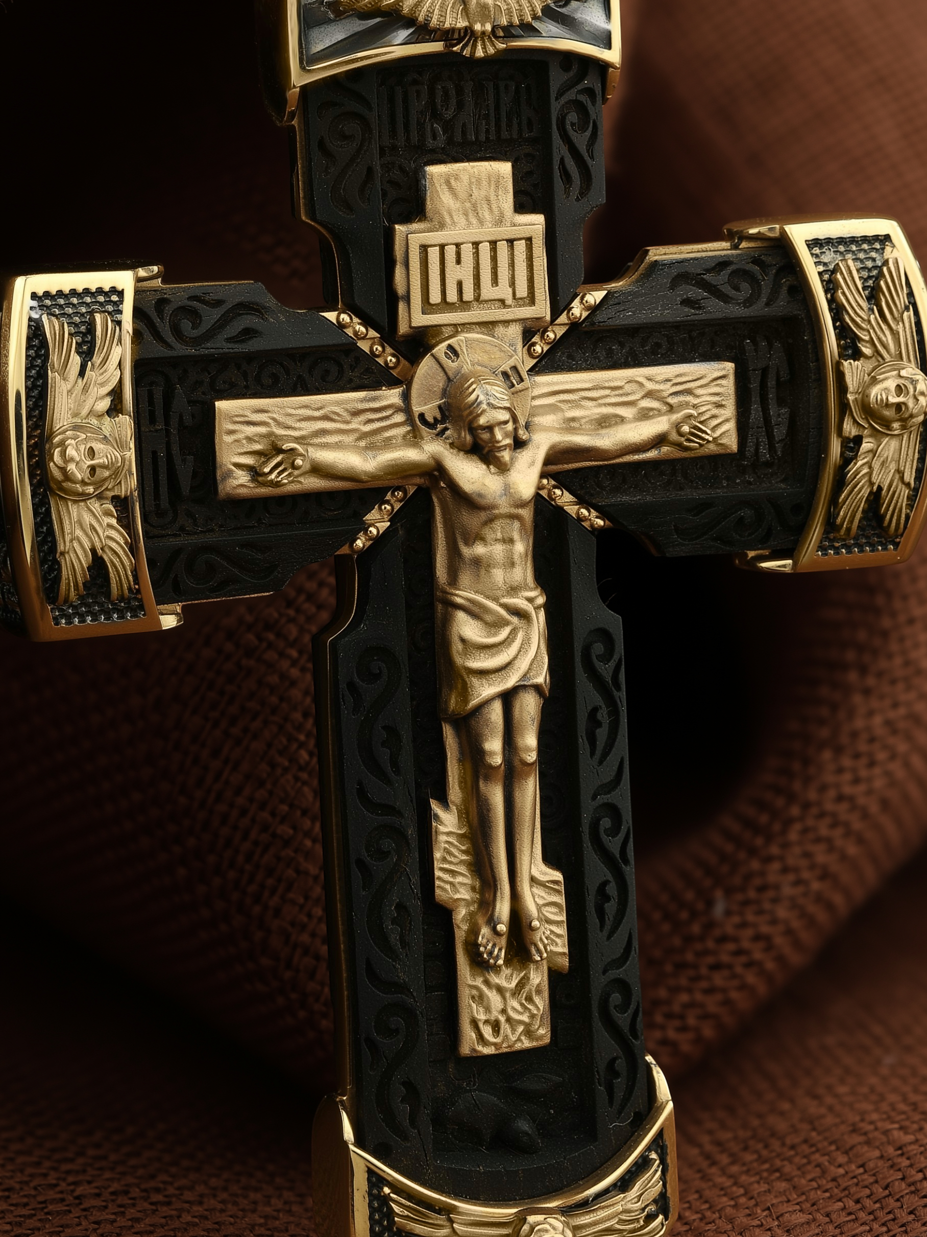 Крест из лимонного золота c эбеновым деревом