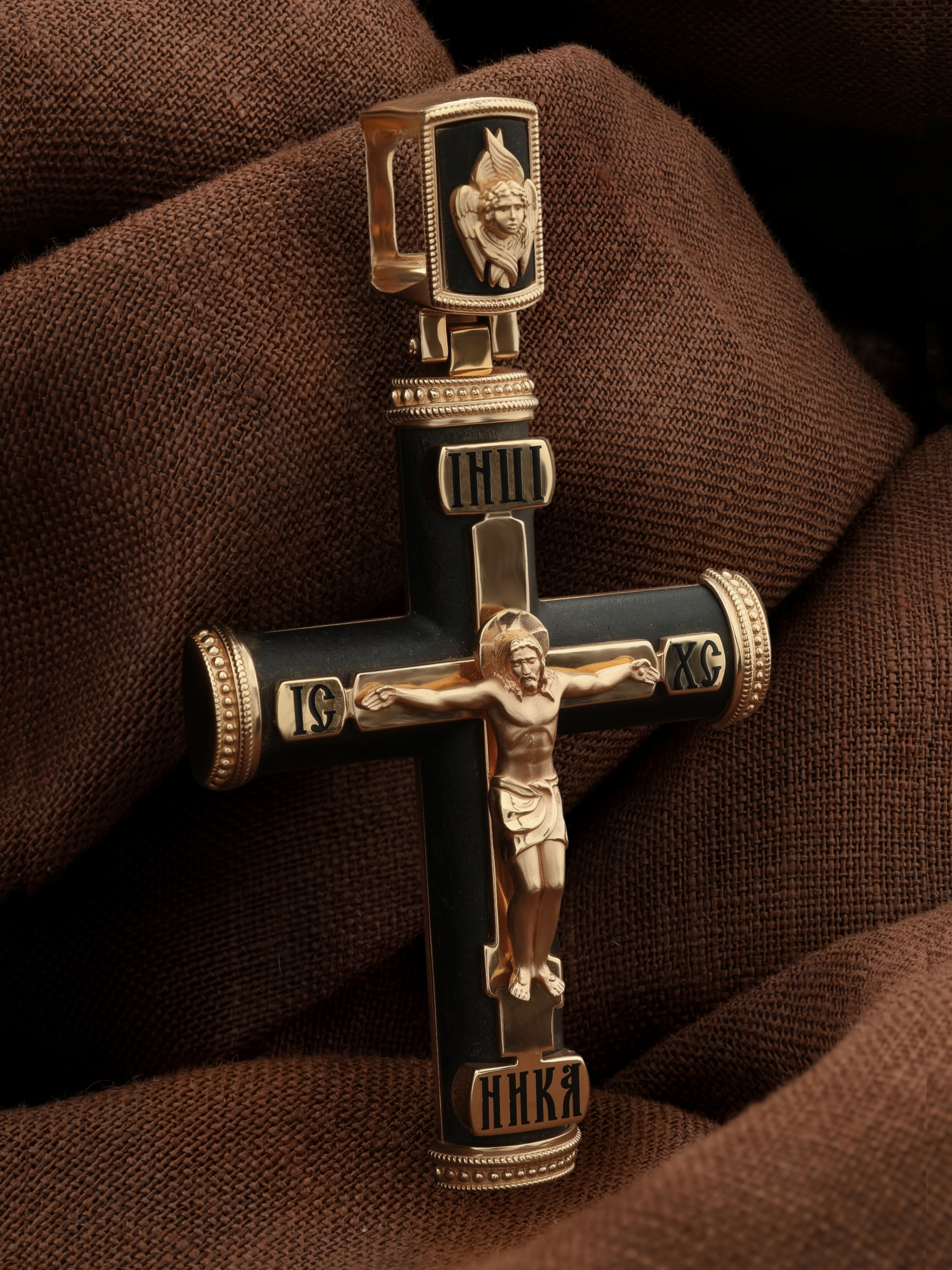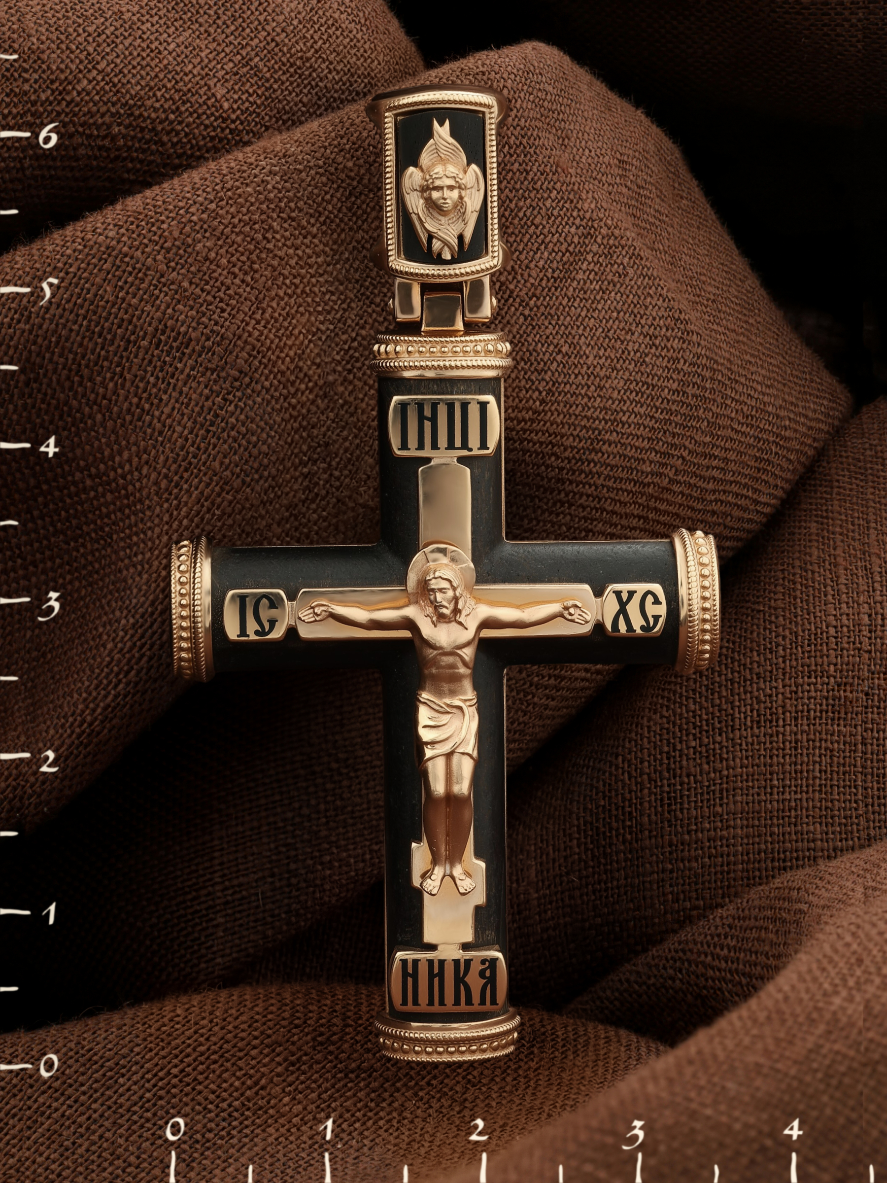 Крест из золота c эмаль и эбеновым деревом