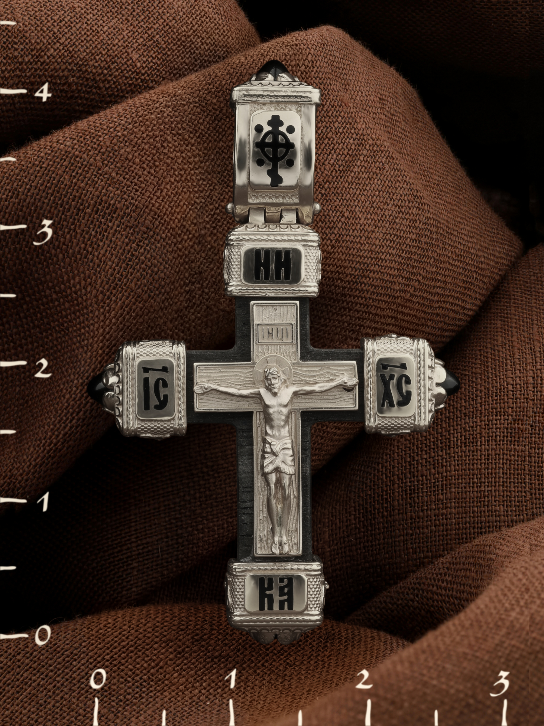 Крест из белого золота c эмаль, ониксом и эбеновым деревом