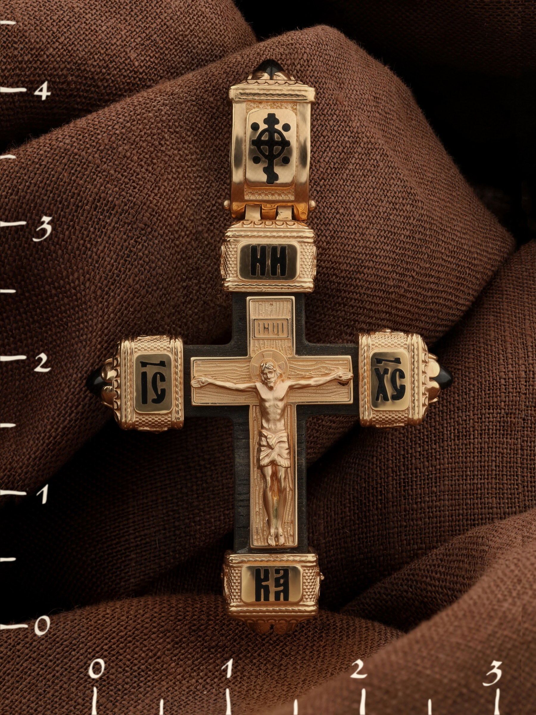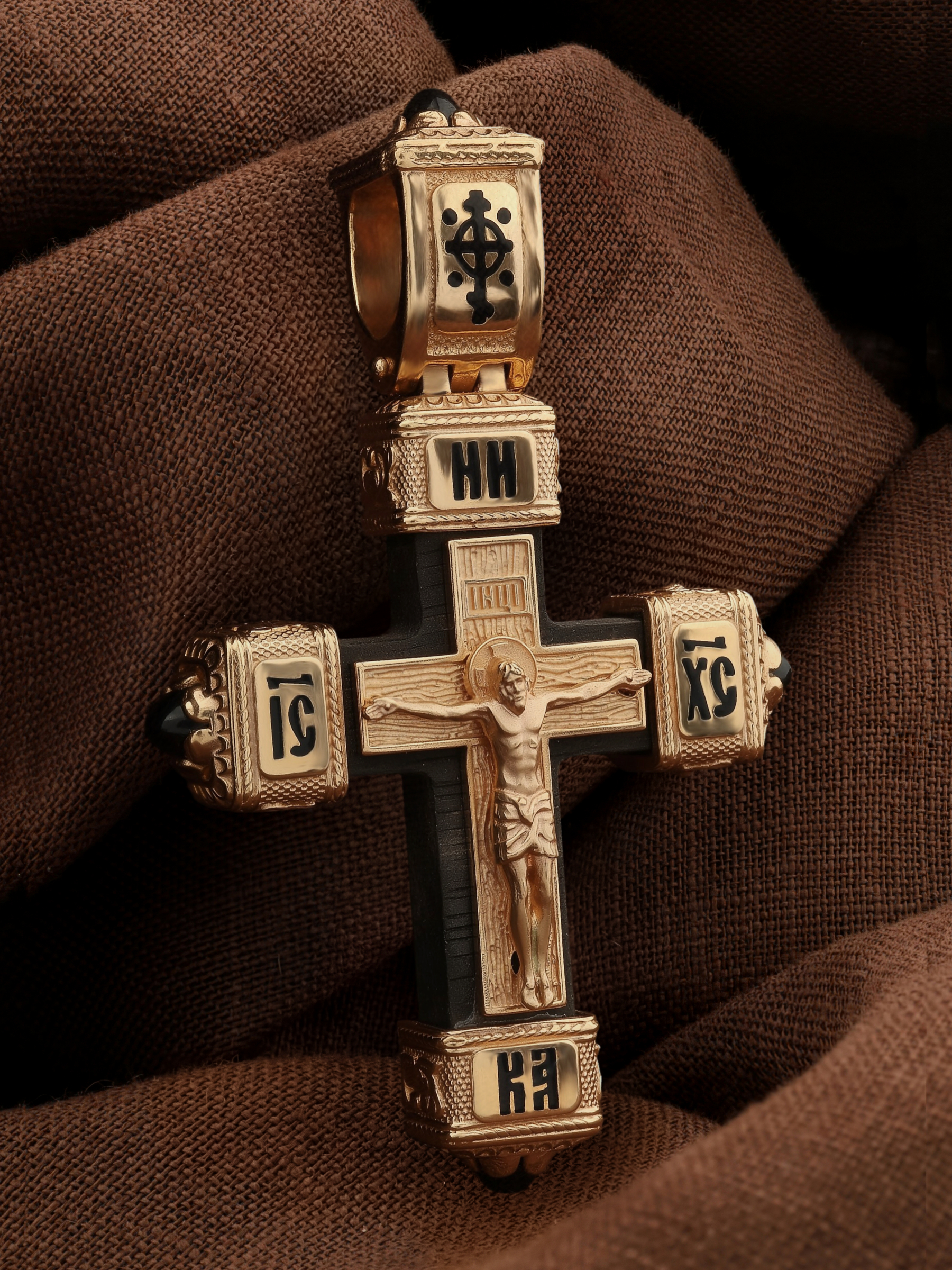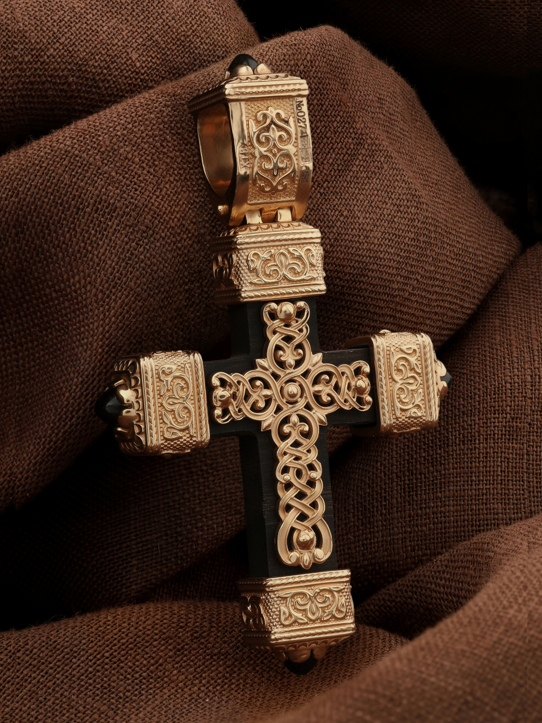 Крест из золота c эмаль, ониксом и эбеновым деревом