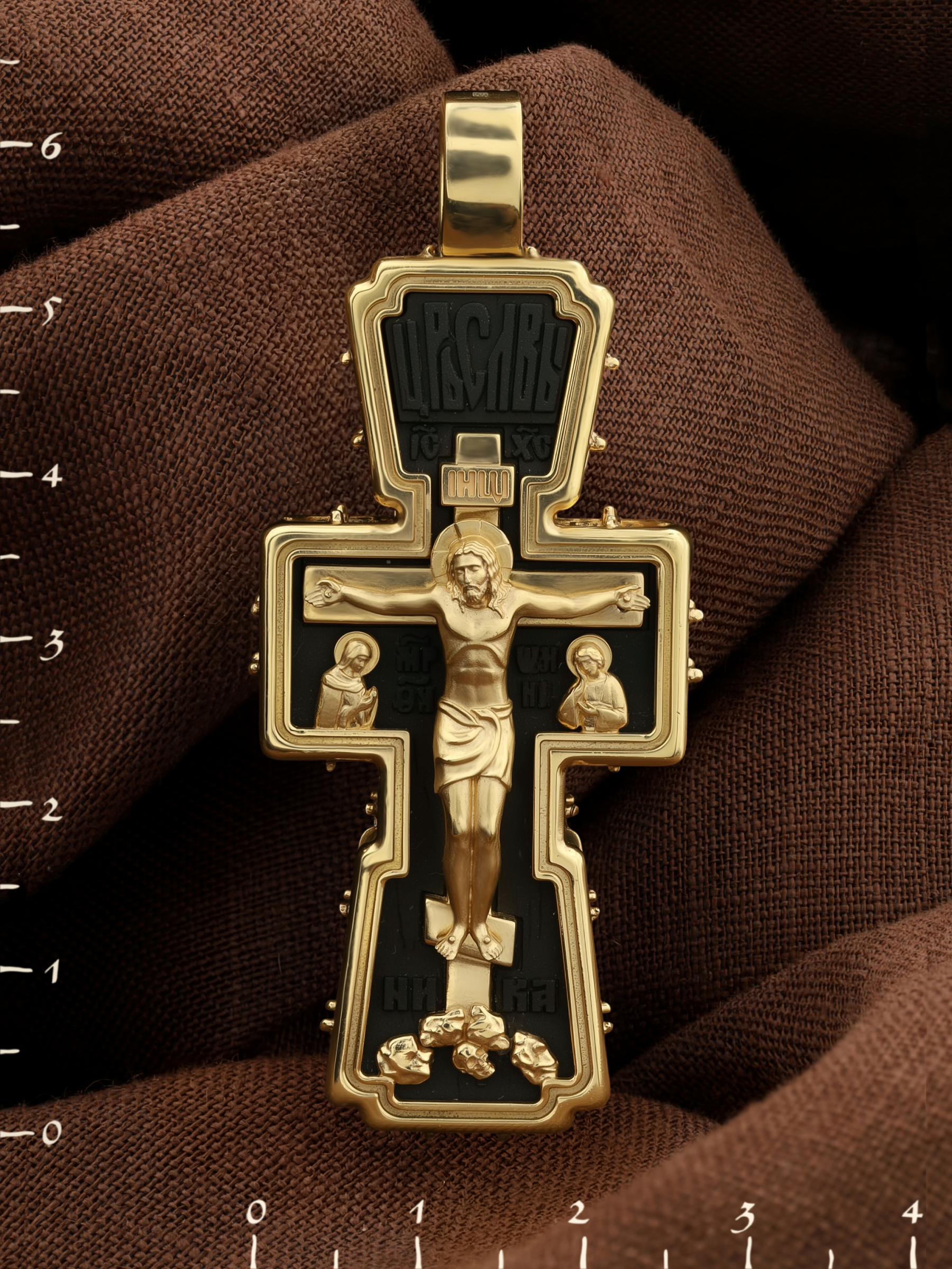 Крест из лимонного золота c эбеновым деревом