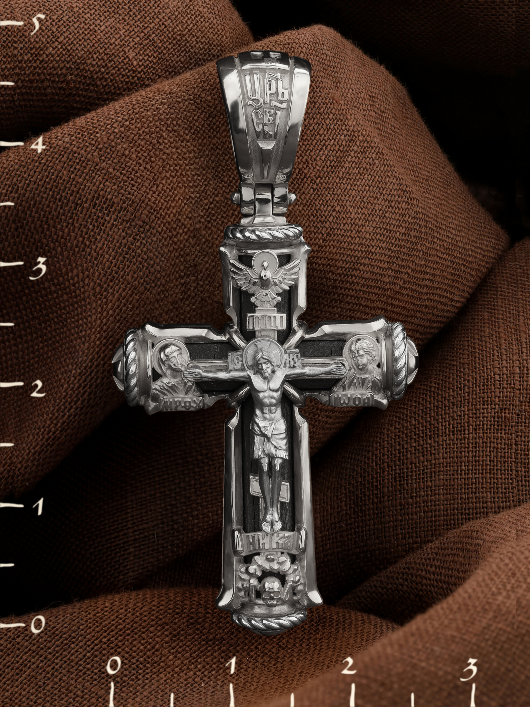 Крест из белого золота c эбеновым деревом