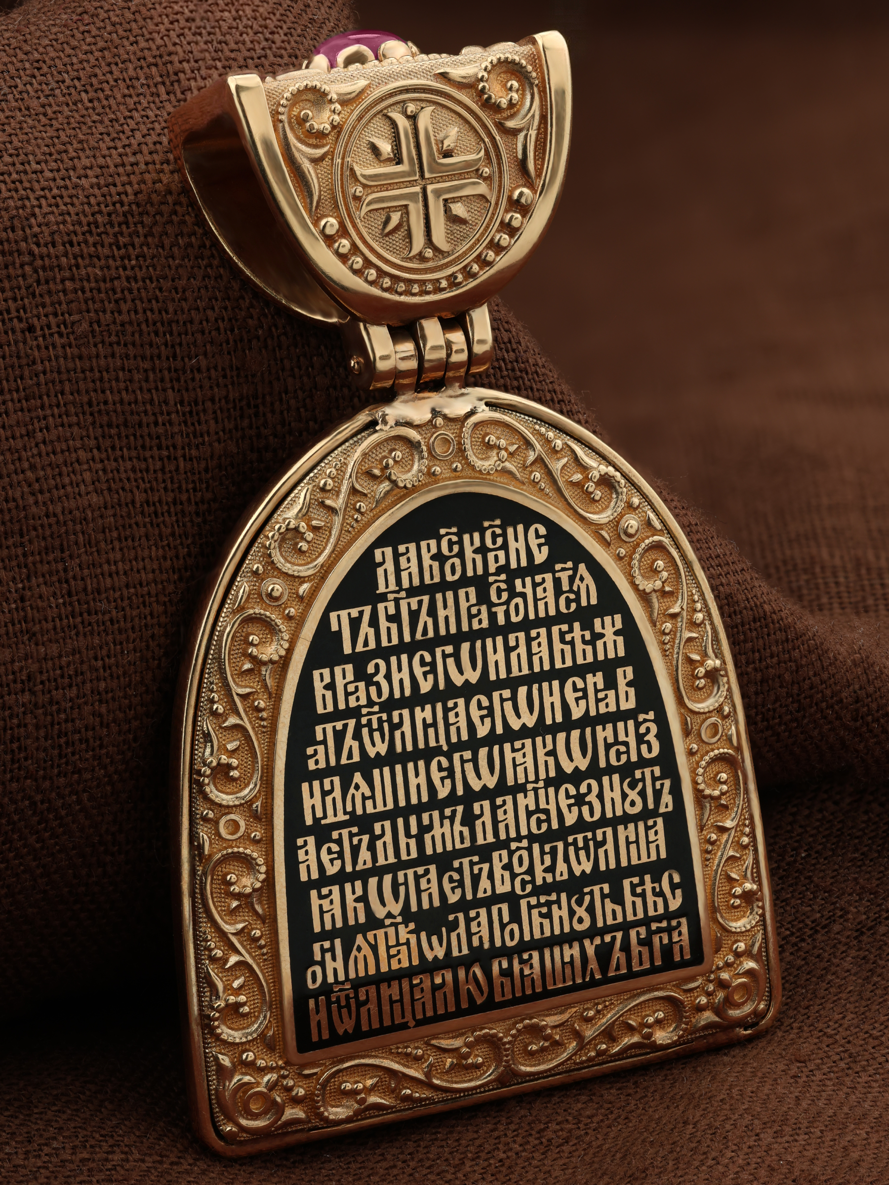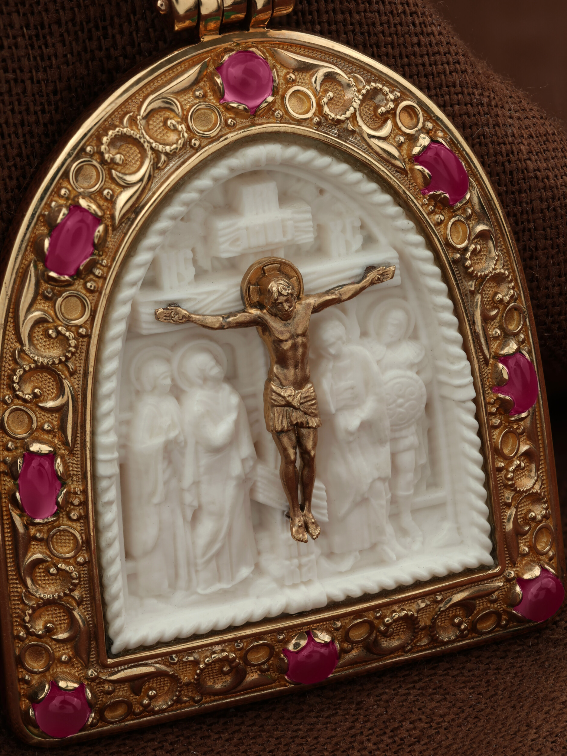 Образок из золота c эмаль, рубином и бивнем мамонта