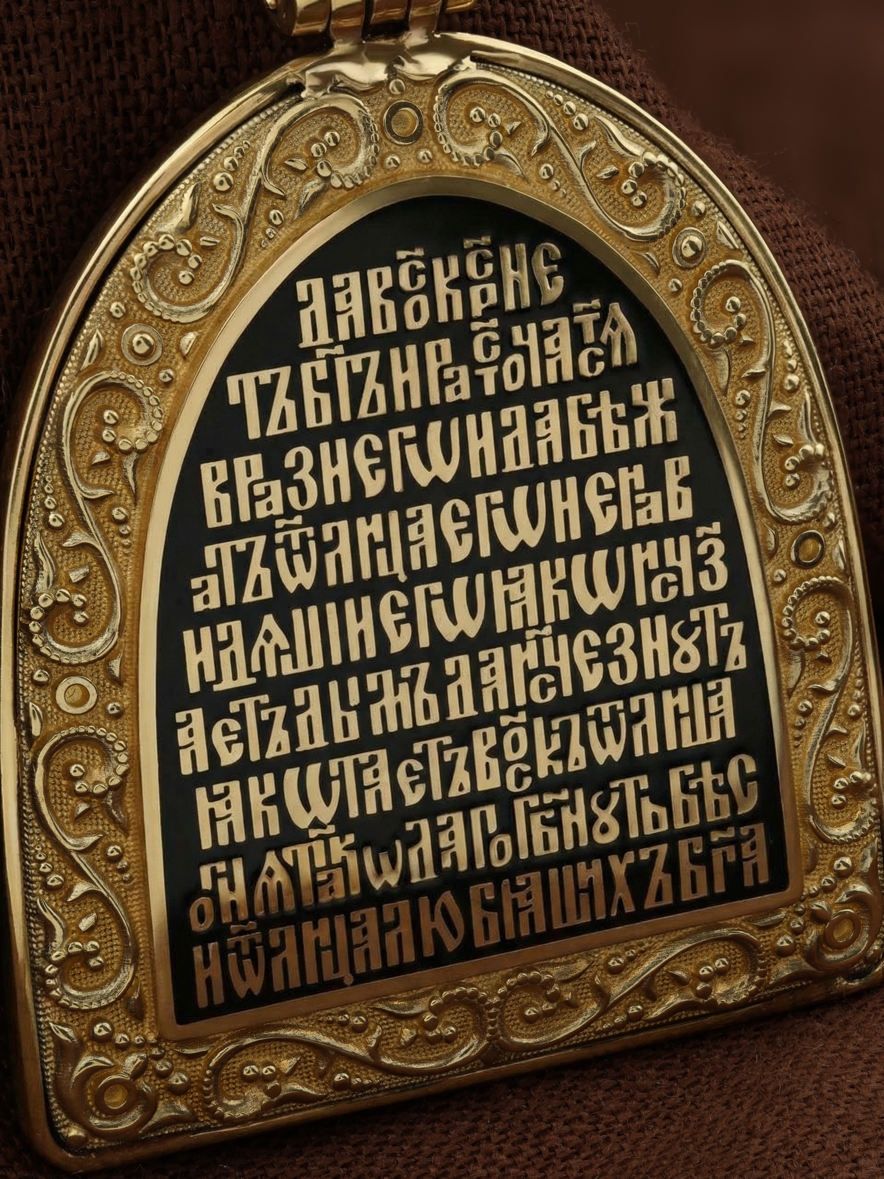 На обороте образка молитва Животворящему Кресту Господню «Да воскреснет Бог, и расточатся врази Его, и да бежат от лица Его ненавидящии Его. Яко исчезает дым, да исчезнут; яко тает воск от лица огня, тако да погибнут беси от лица любящих Бога»