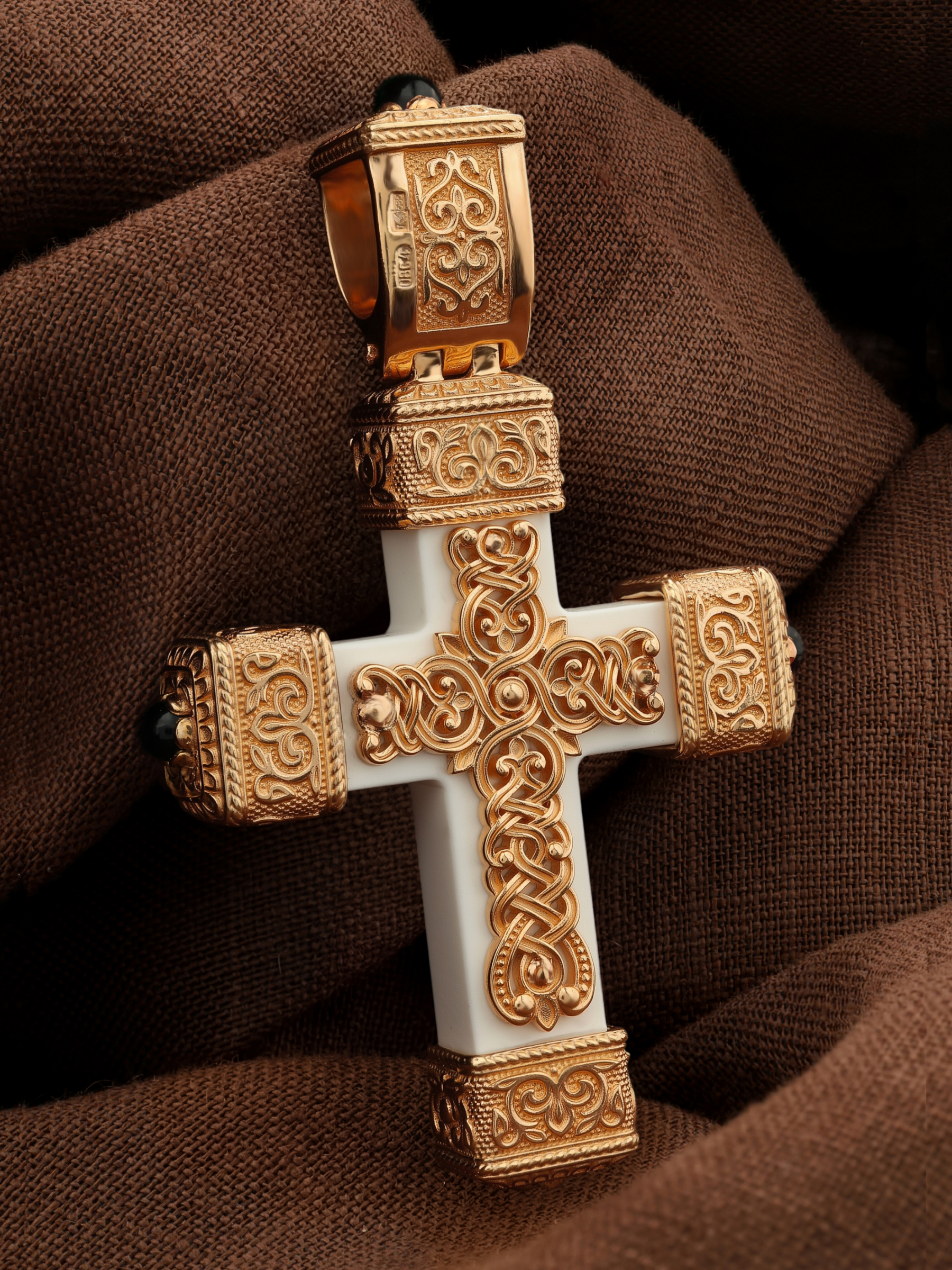 Крест из золота c эмаль, ониксом и бивнем мамонта