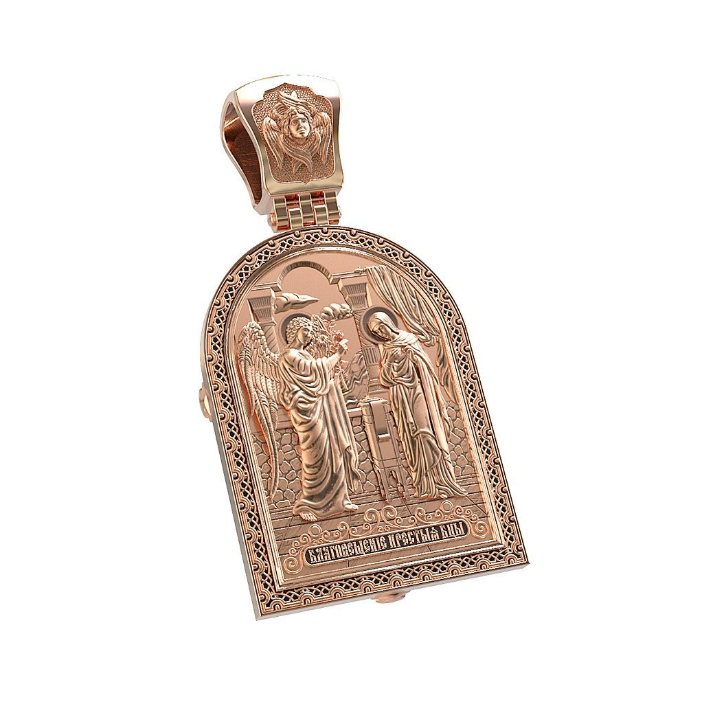 На кулонном кольце изображен шестикрылый Серафим — самый приближенный к Господу Ангел.