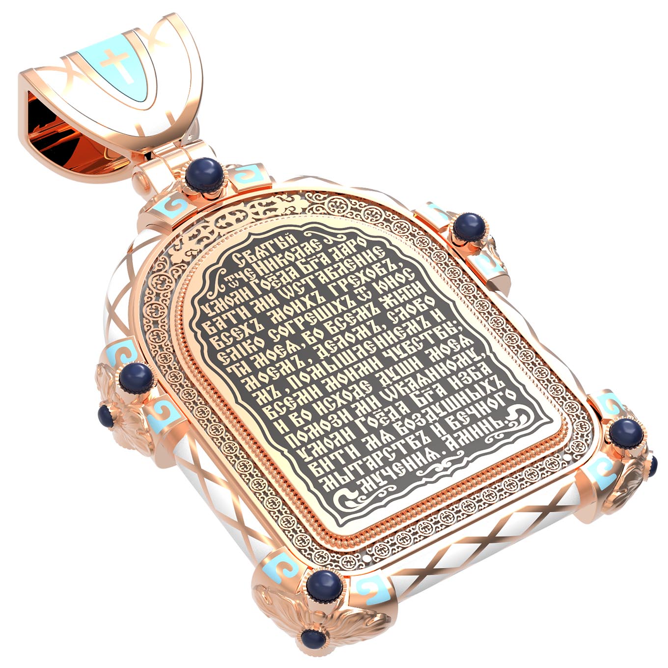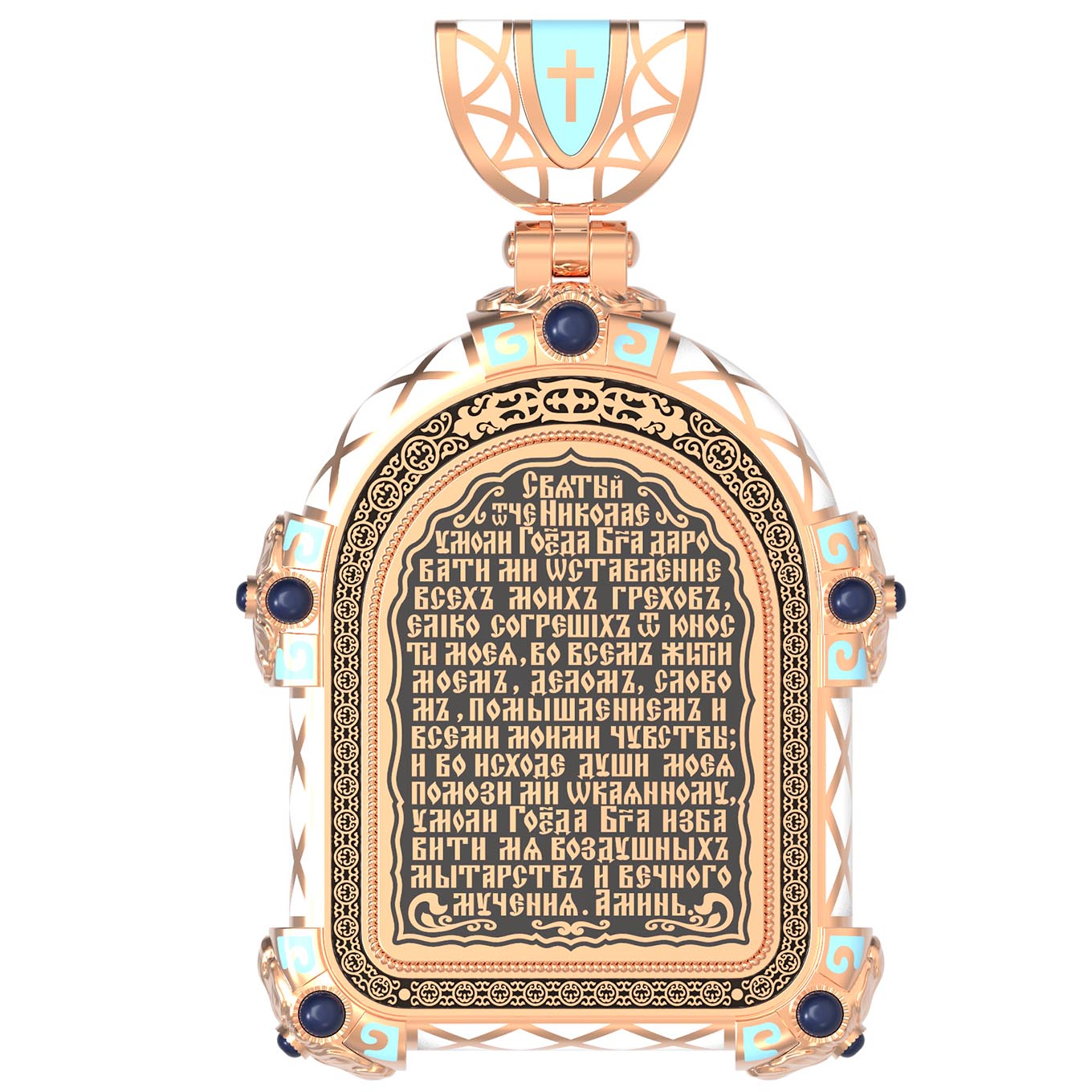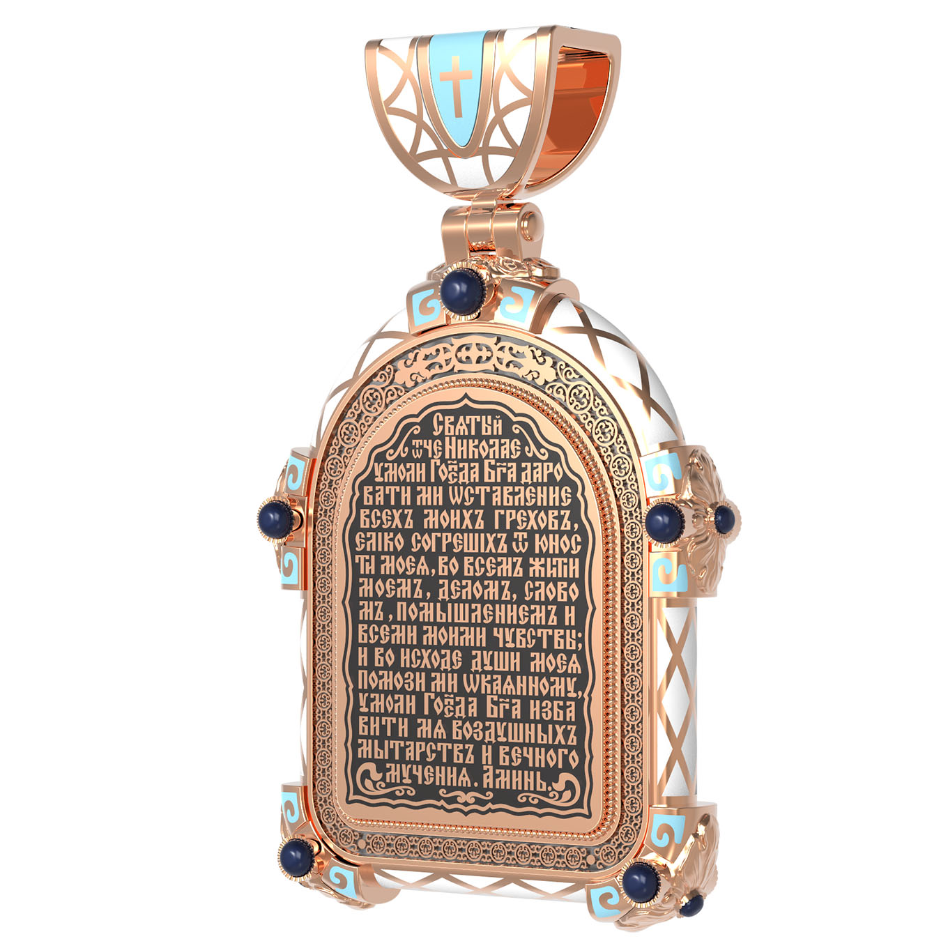 На лицевой стороне образка изображен Святитель Николай архиепископ Мир Ликийских, Чудотворец. Он является одним из самых известных на Руси святых, издревле считающийся помощником и молитвенником за всех, притекающих к нему. Чудес его исчислить невозможно. Николай Чудотворец подавал многим исцеления в болезнях и телесных недугах, обогащал бедствующих в крайней нищете, подавал голодным пищу, спасал от потопления, освобождал из плена и избавлял от смерти.