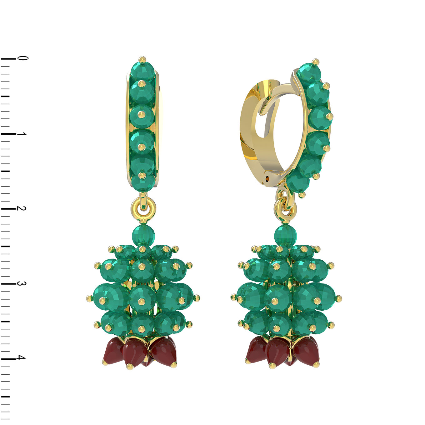 Серьги из лимонного золота c гранатом, хризопразом и кораллом