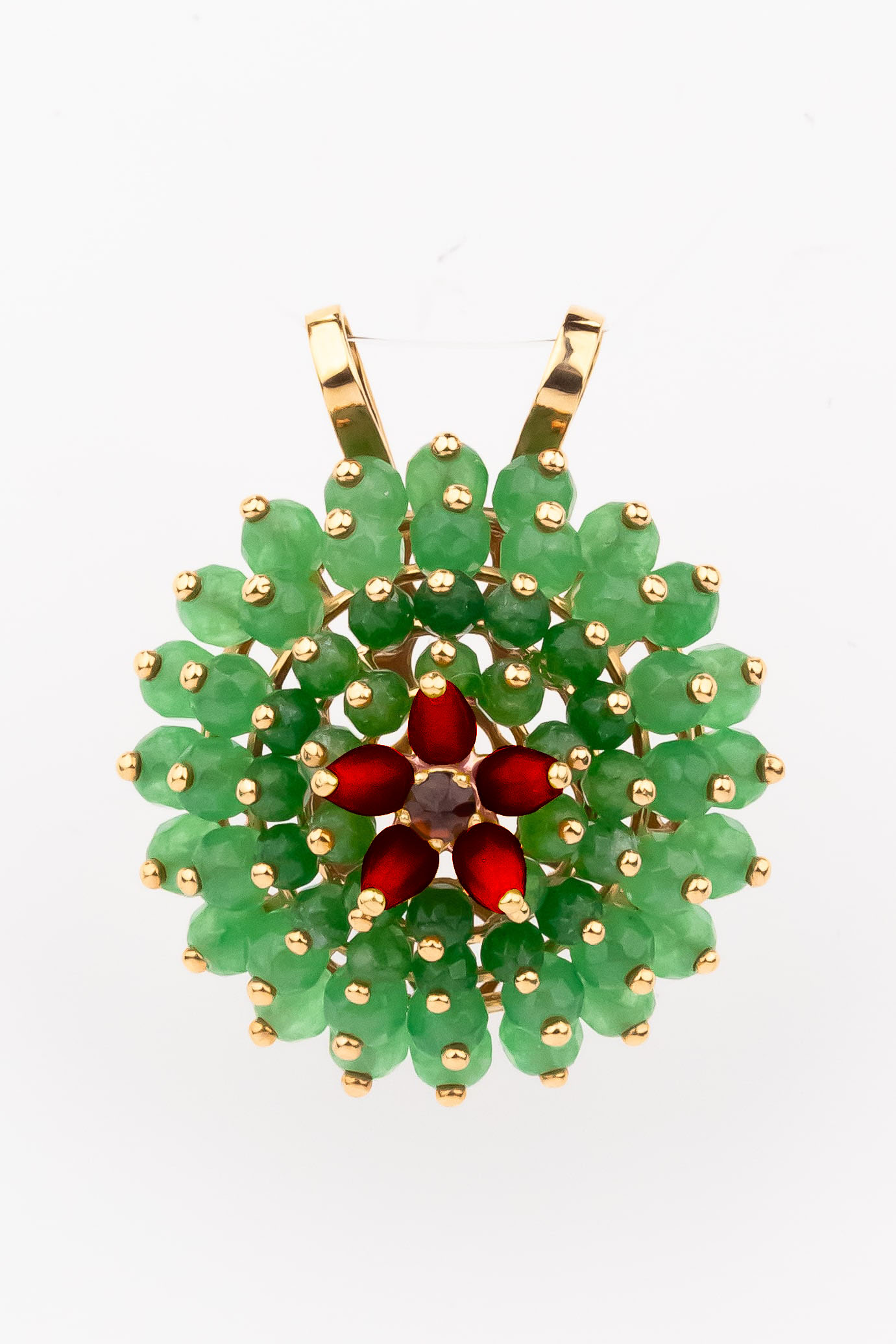 Подвеска из золота c гранатом, хризопразом и кораллом