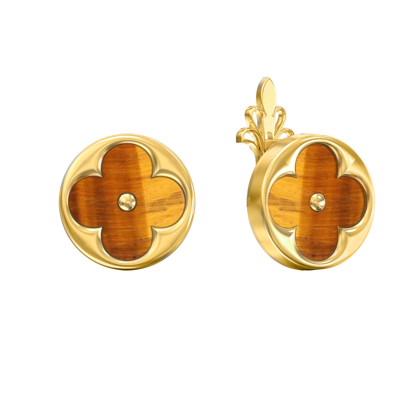 Серьги из лимонного золота c тигровым глазом