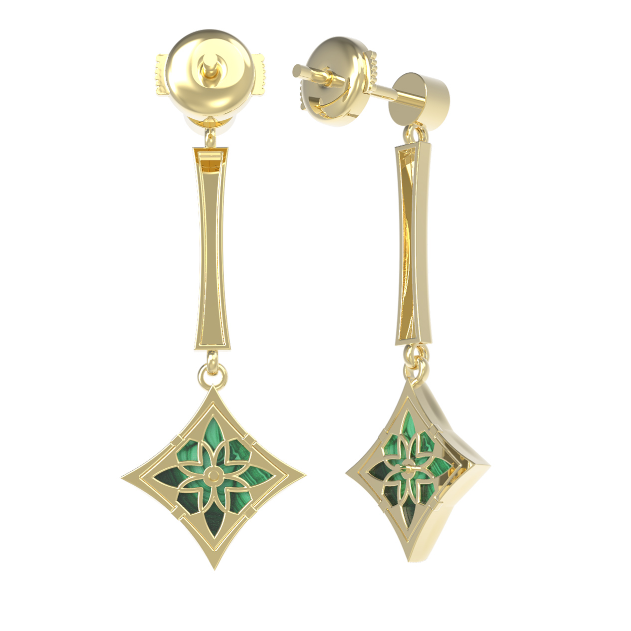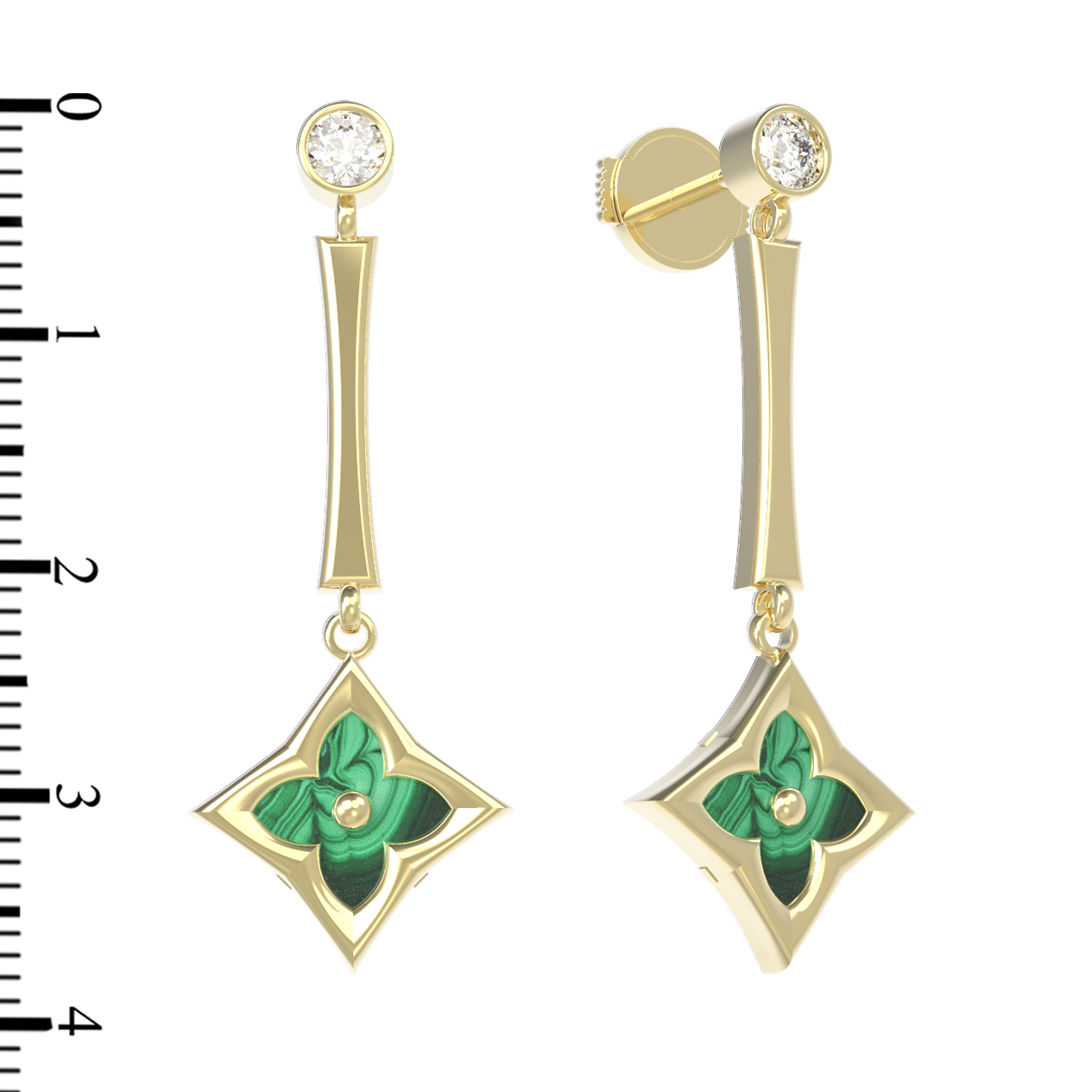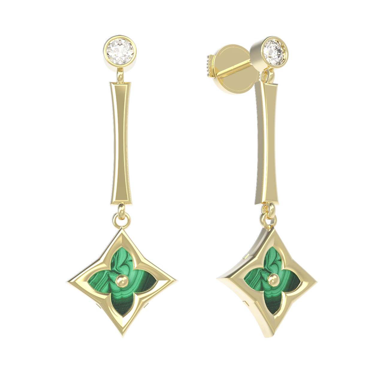 Серьги из лимонного золота c фианитом и малахитом