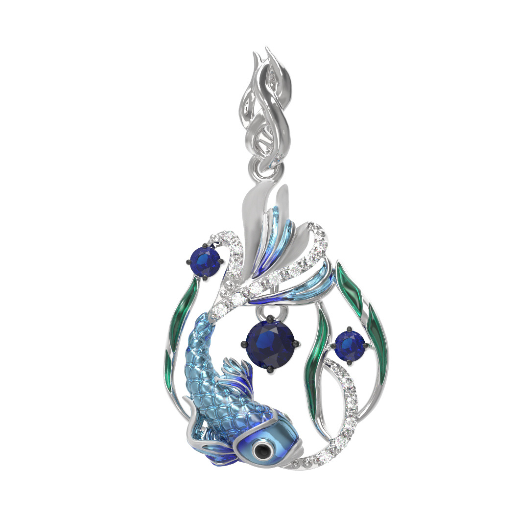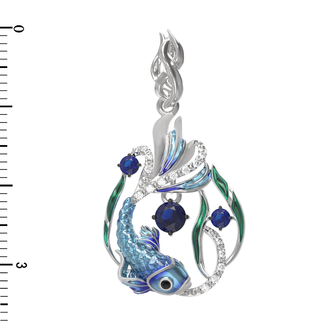 Подвеска из белого золота c эмаль, фианитом и сапфиром