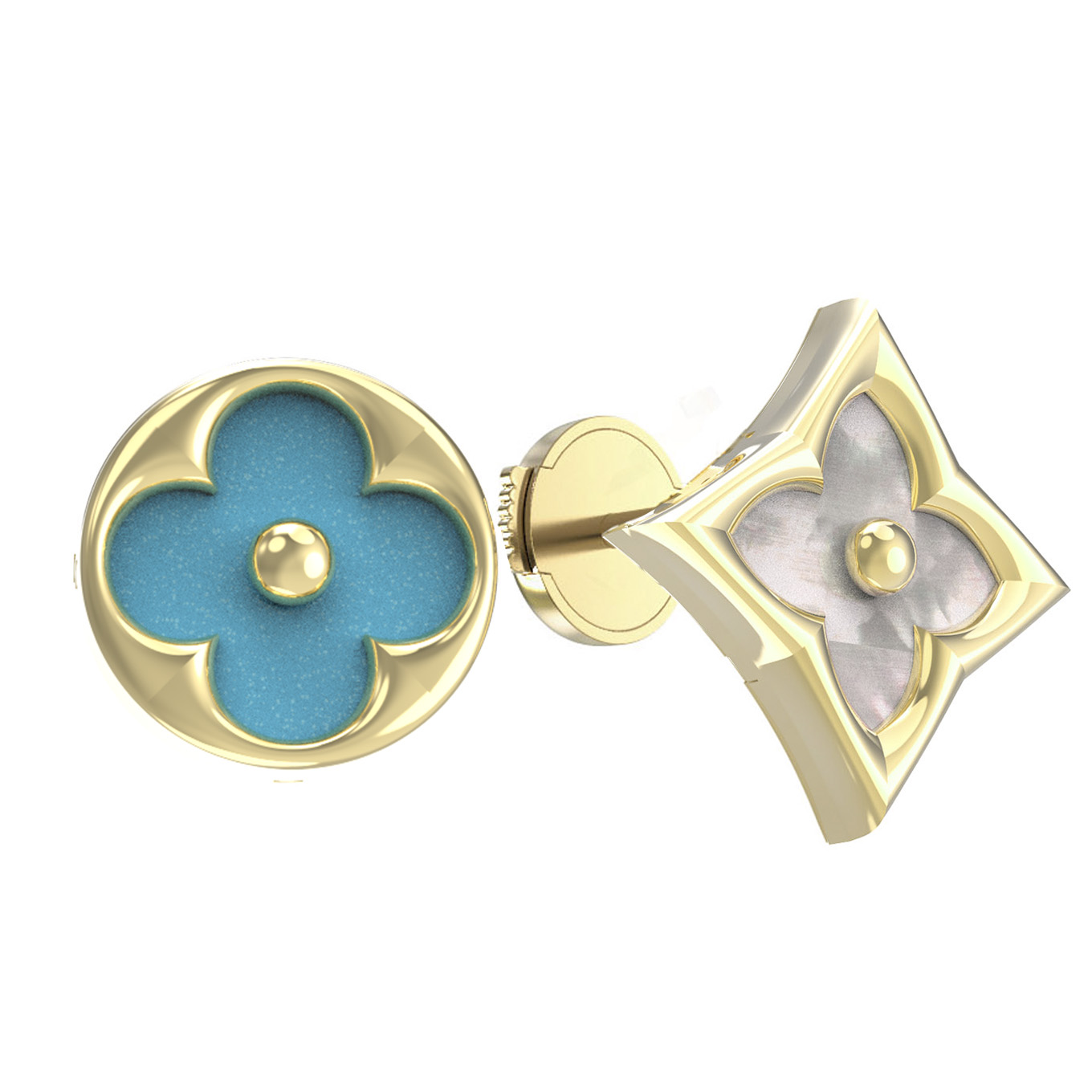 Серьги из лимонного золота c бирюзой и перламутром