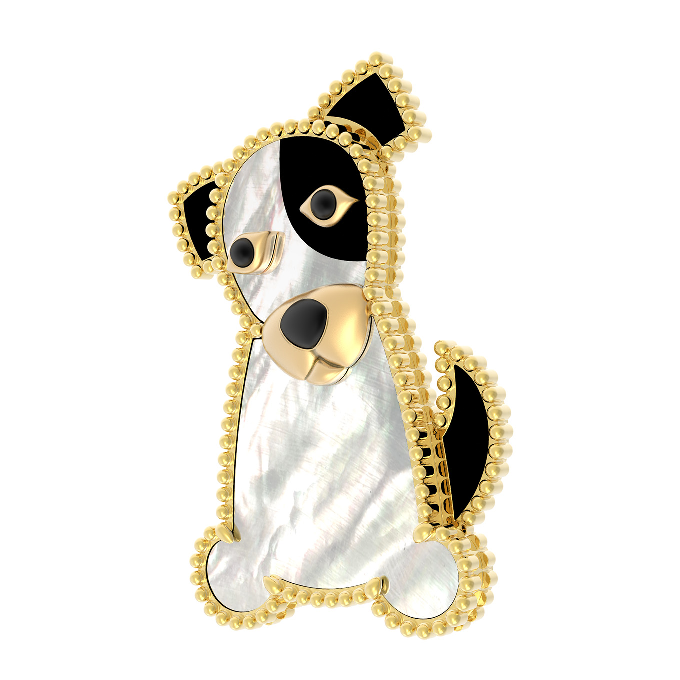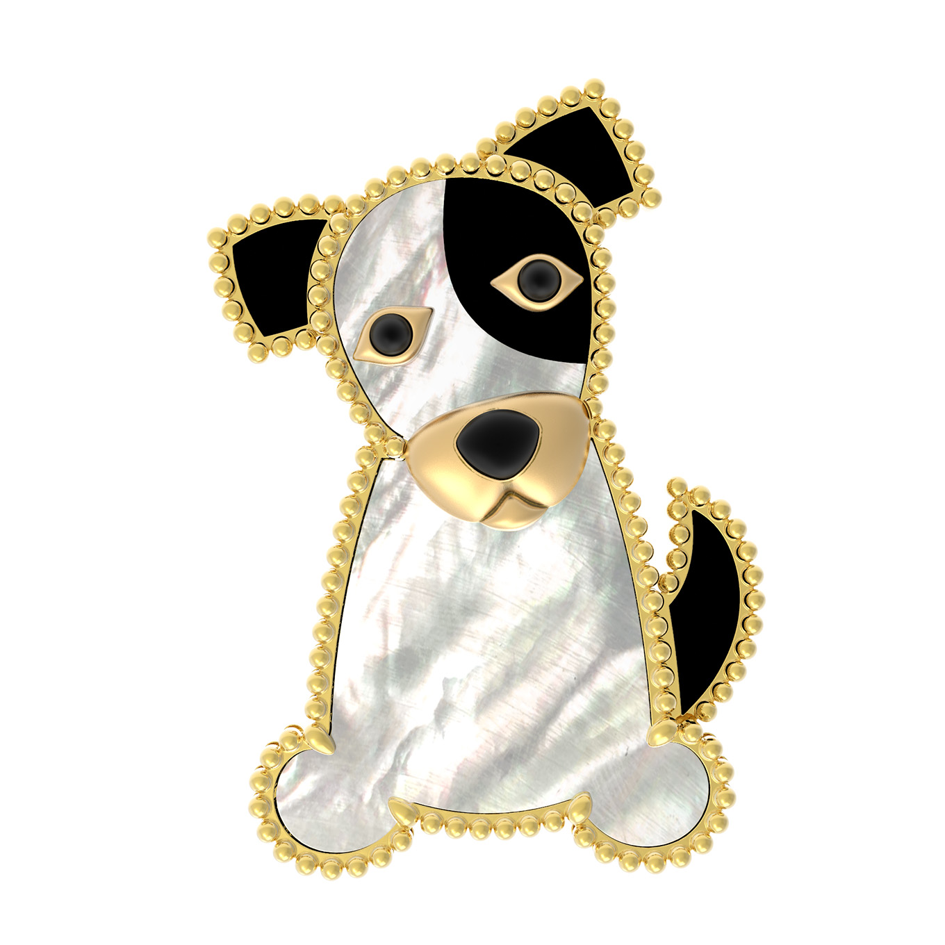 Брошь из лимонного золота c эмаль, ониксом и перламутром
