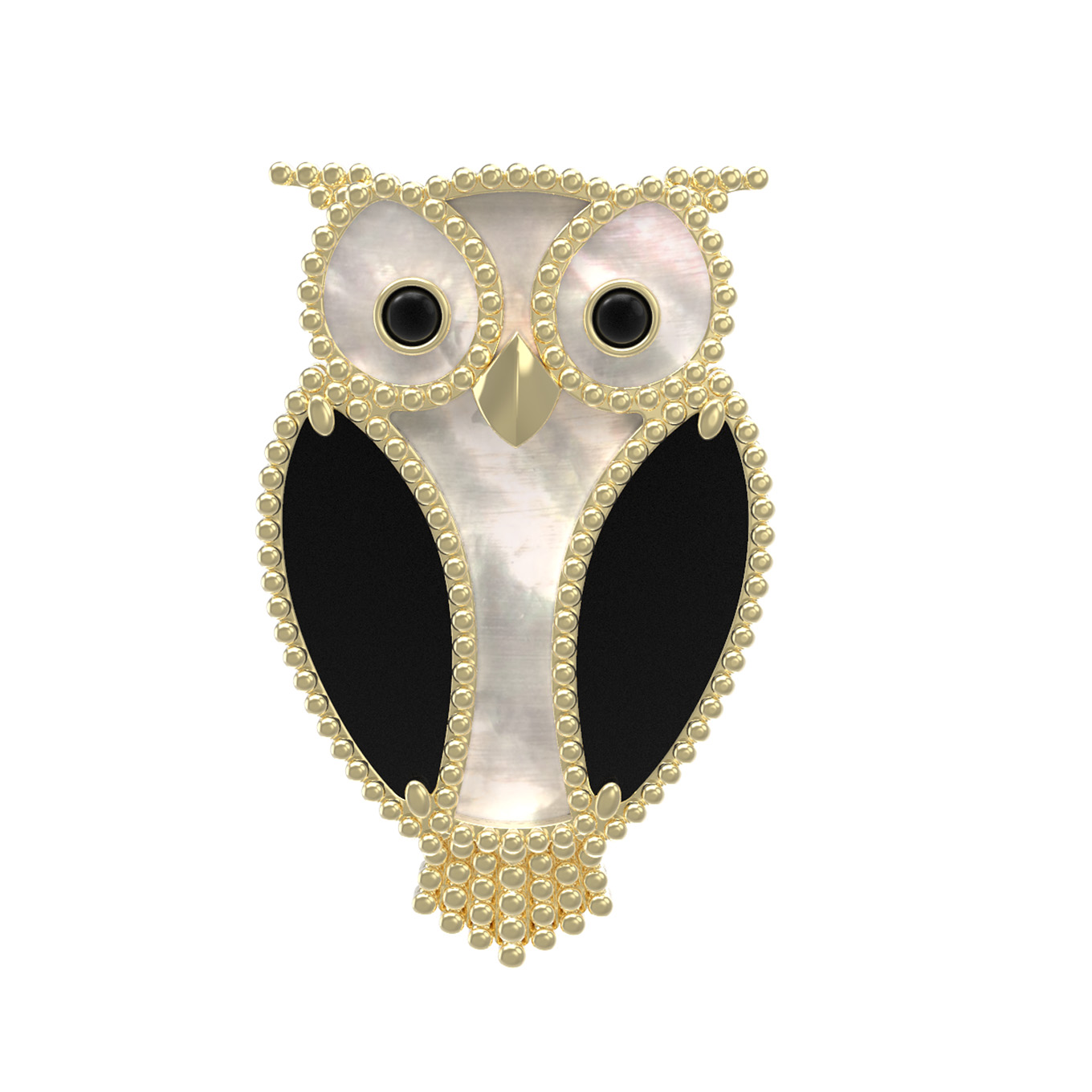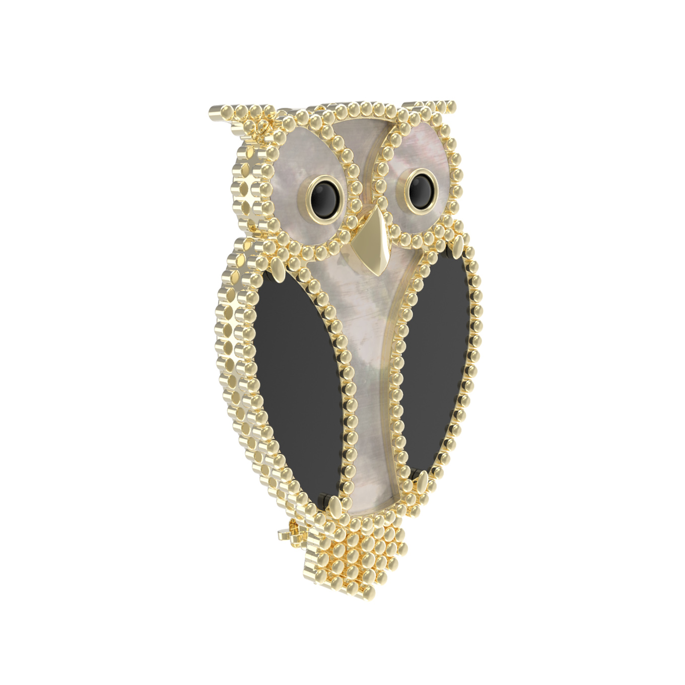 Брошь из лимонного золота c эмаль, ониксом и перламутром