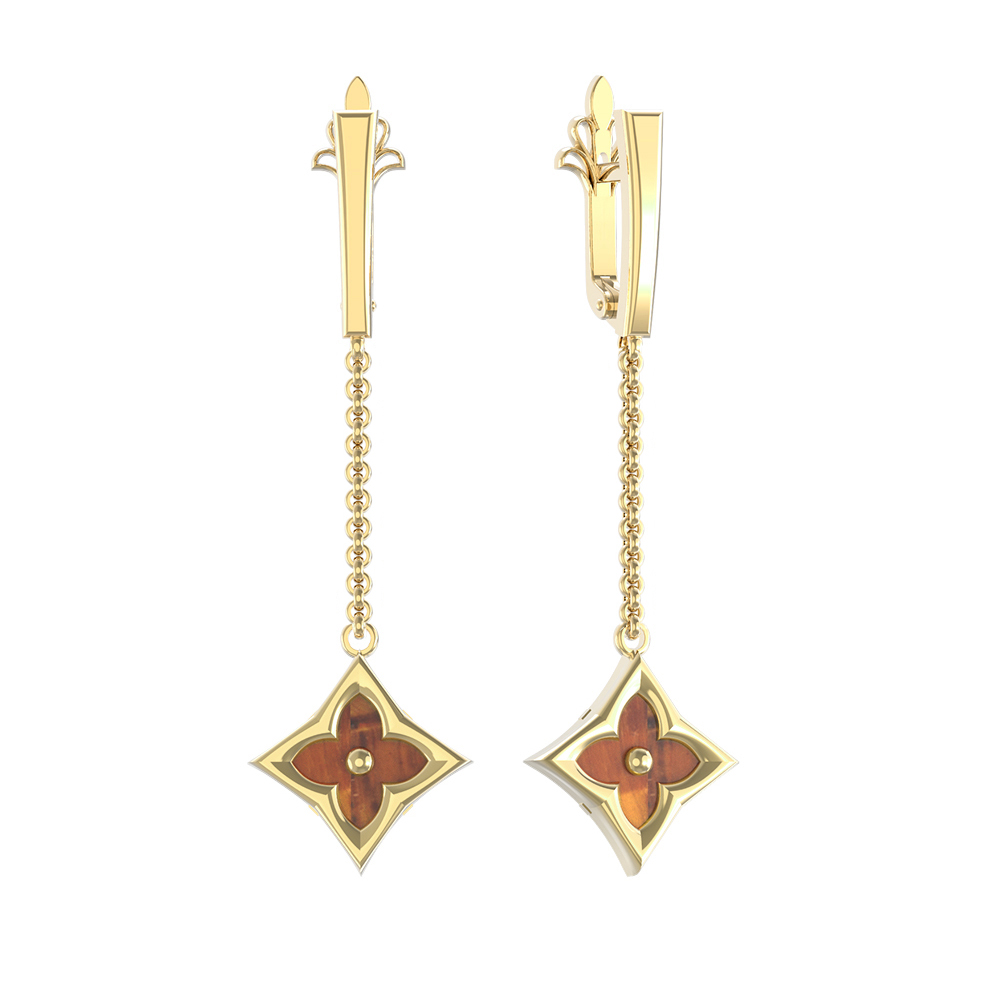 Серьги из лимонного золота c тигровым глазом