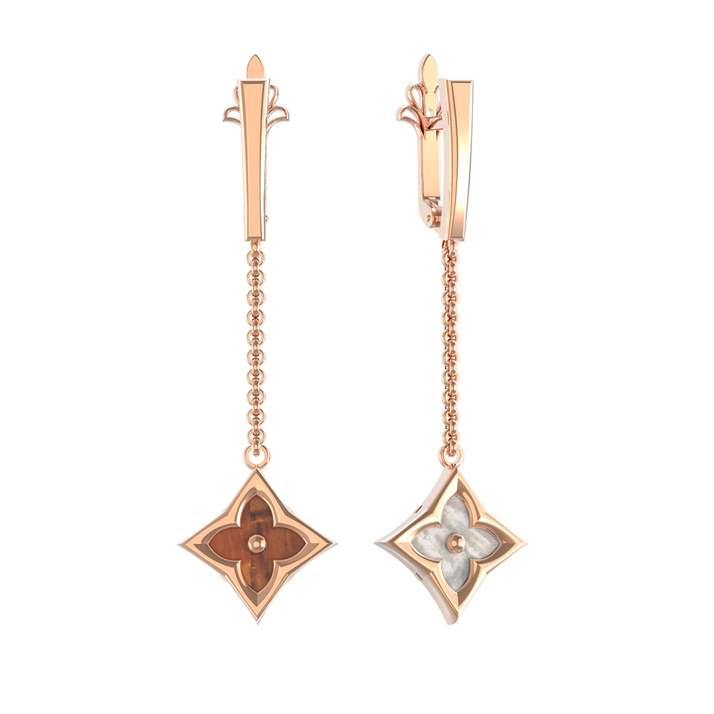 Серьги из золота c тигровым глазом и перламутром
