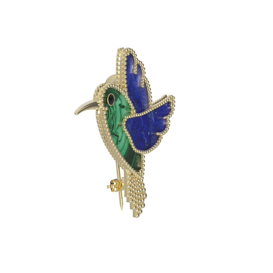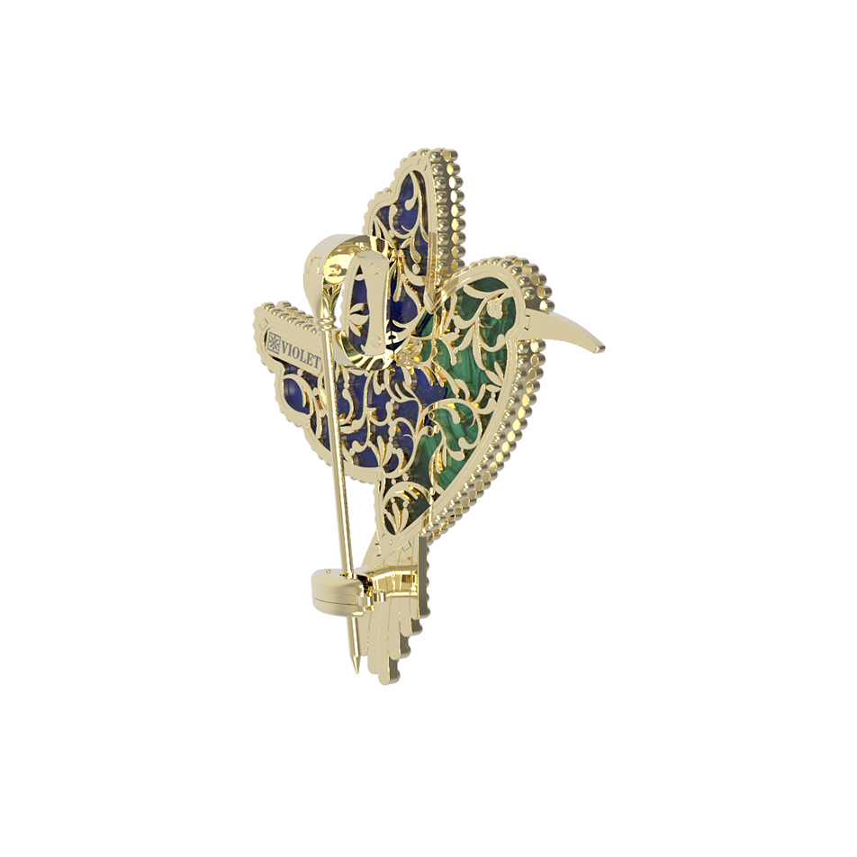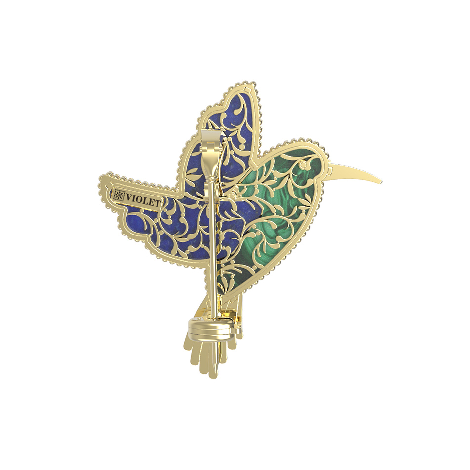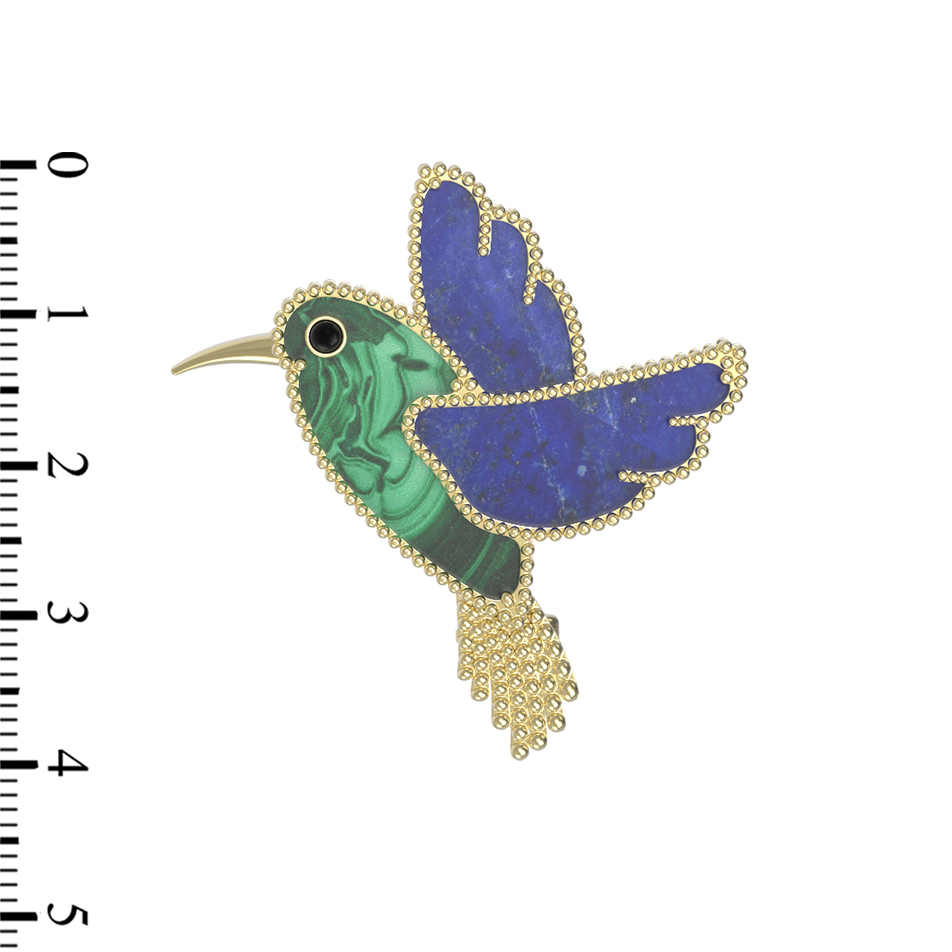 Брошь из лимонного золота c эмаль, лазуритом и малахитом