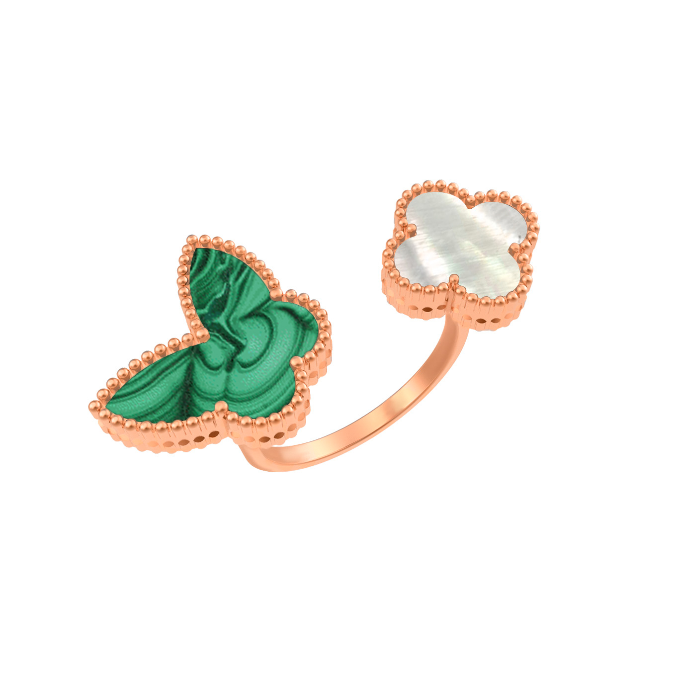 Кольцо из золота c малахитом и перламутром