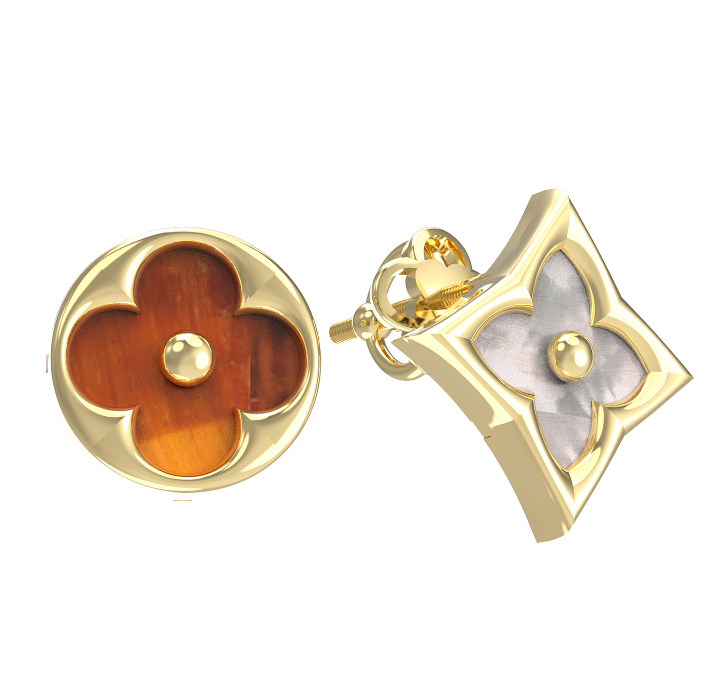 Серьги из лимонного золота c тигровым глазом и перламутром