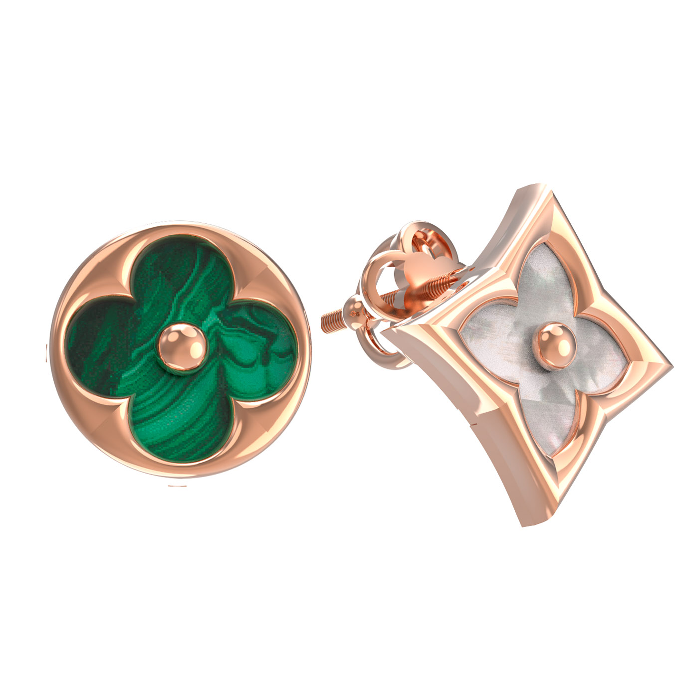 Серьги из золота c малахитом и перламутром