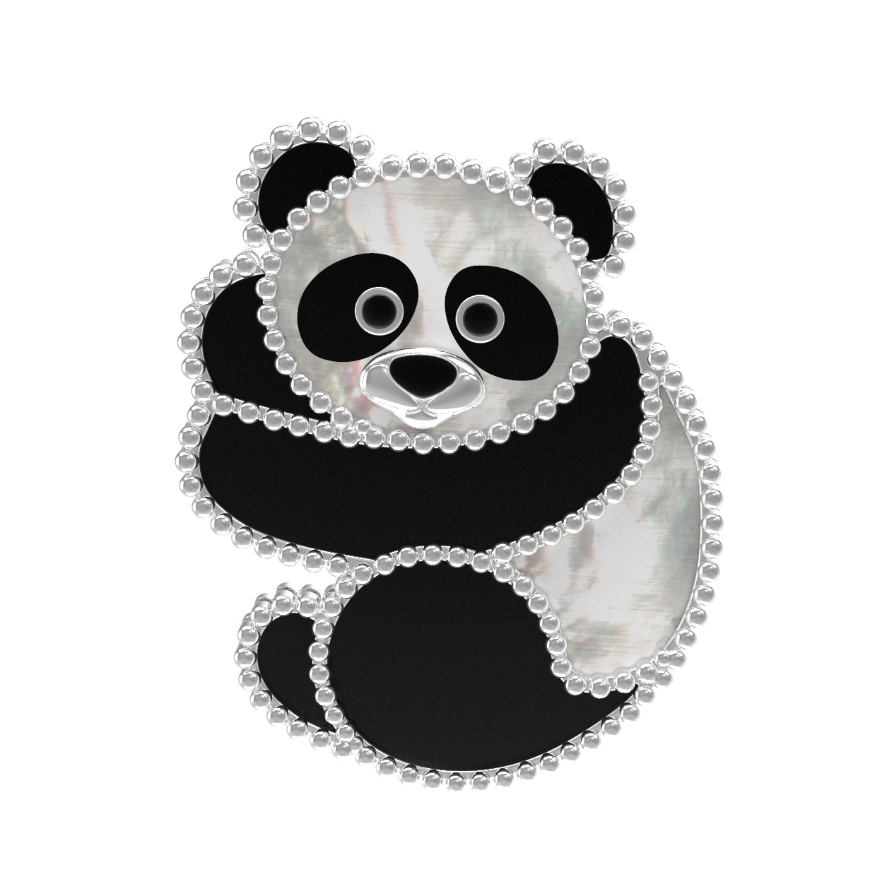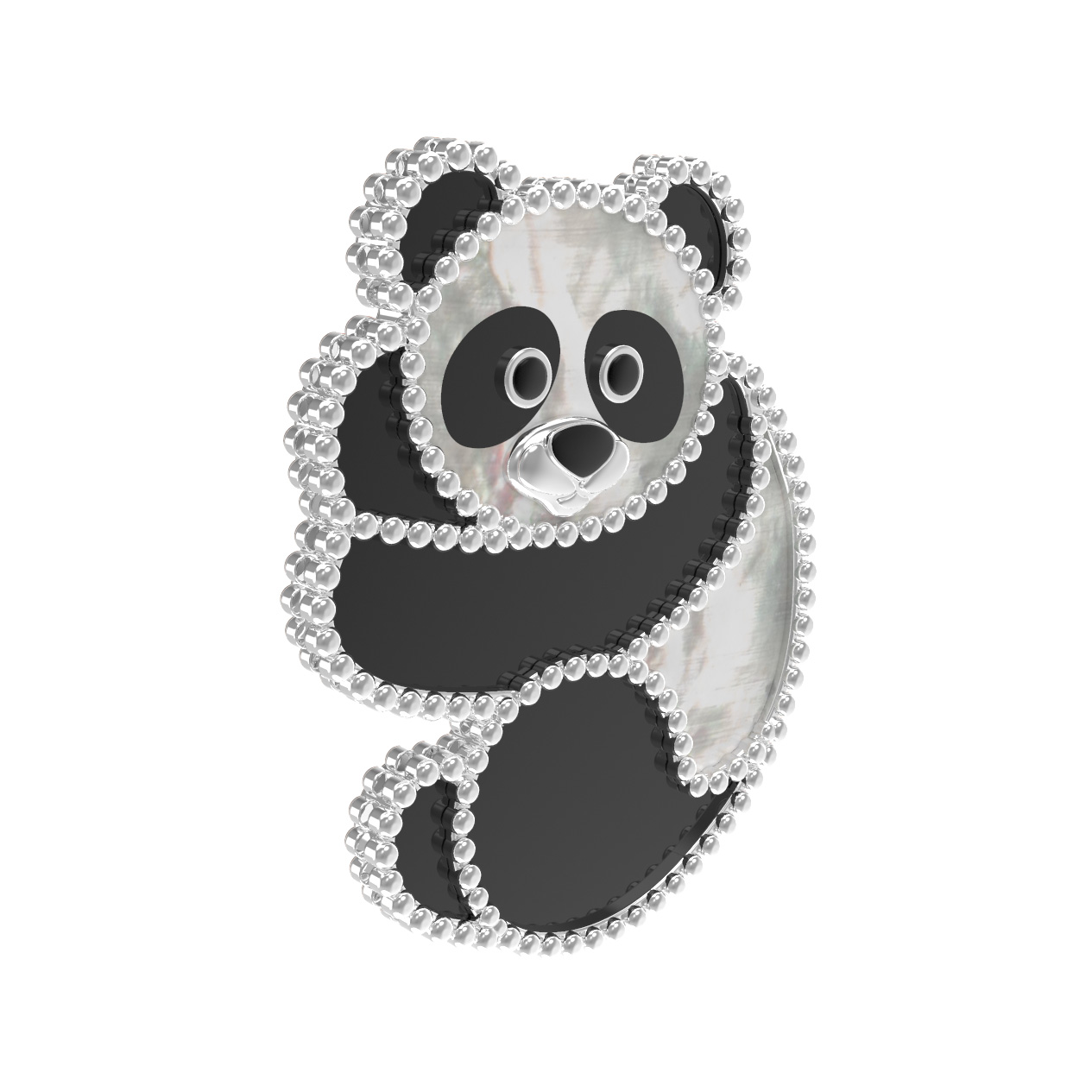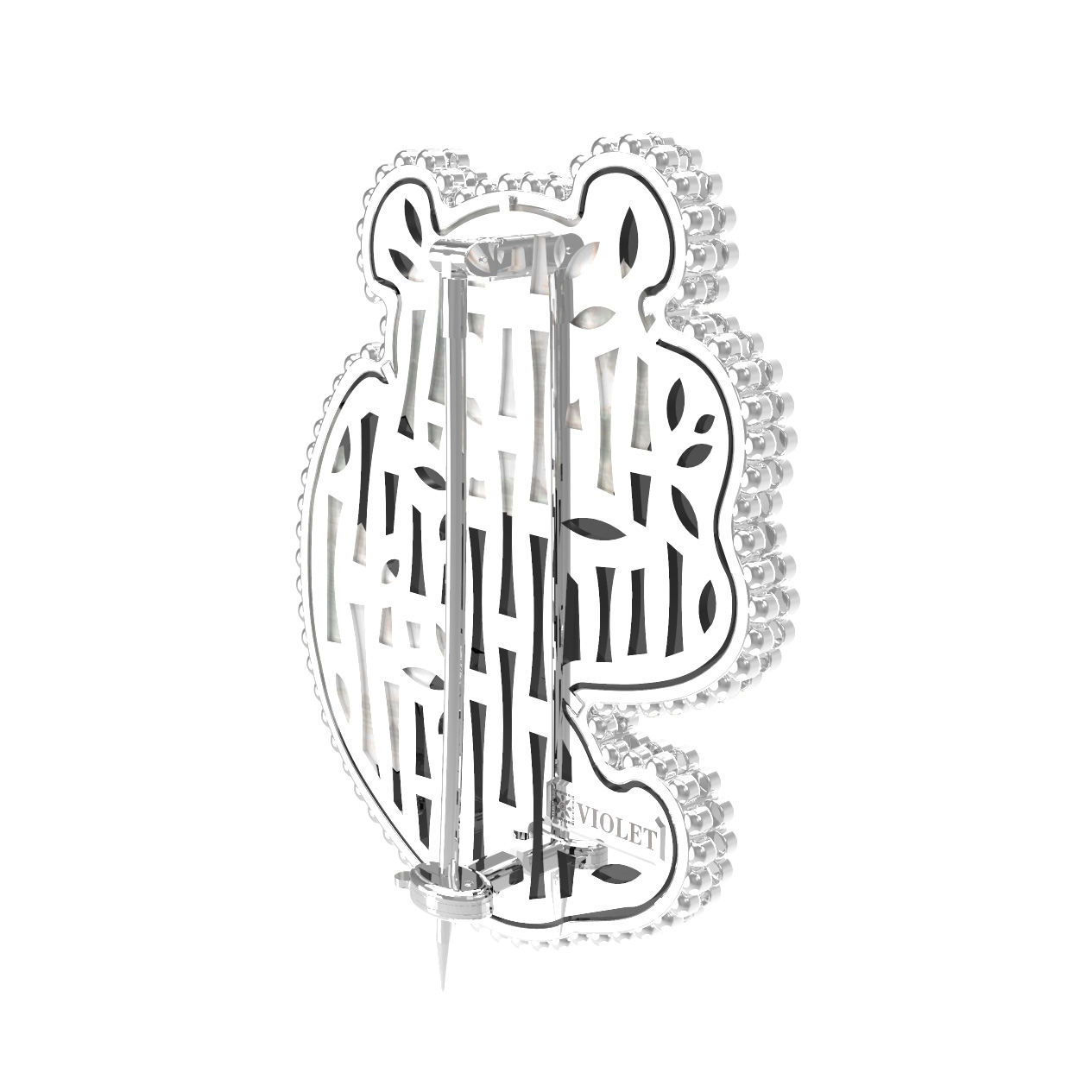 Брошь из белого золота c эмаль, ониксом и перламутром