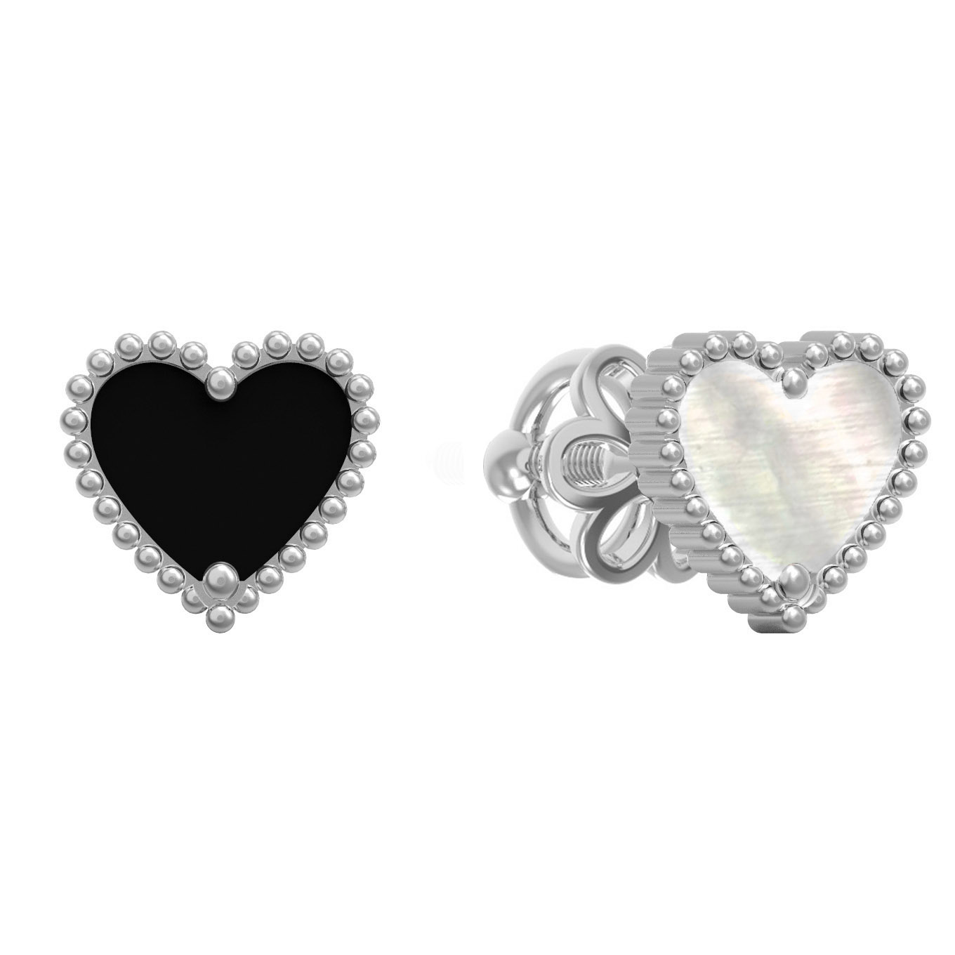 Серьги из белого золота c ониксом и перламутром