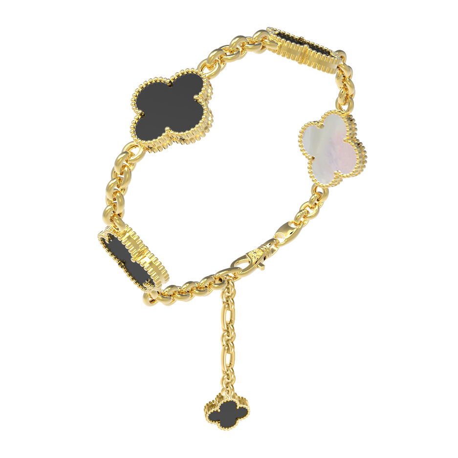 Браслет из лимонного золота c ониксом и перламутром