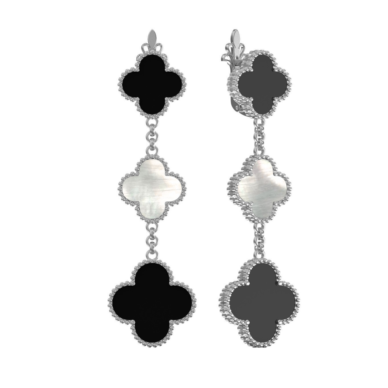 Серьги из белого золота c ониксом и перламутром