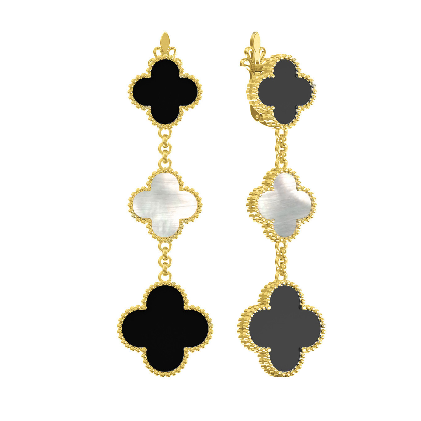 Серьги из лимонного золота c ониксом и перламутром