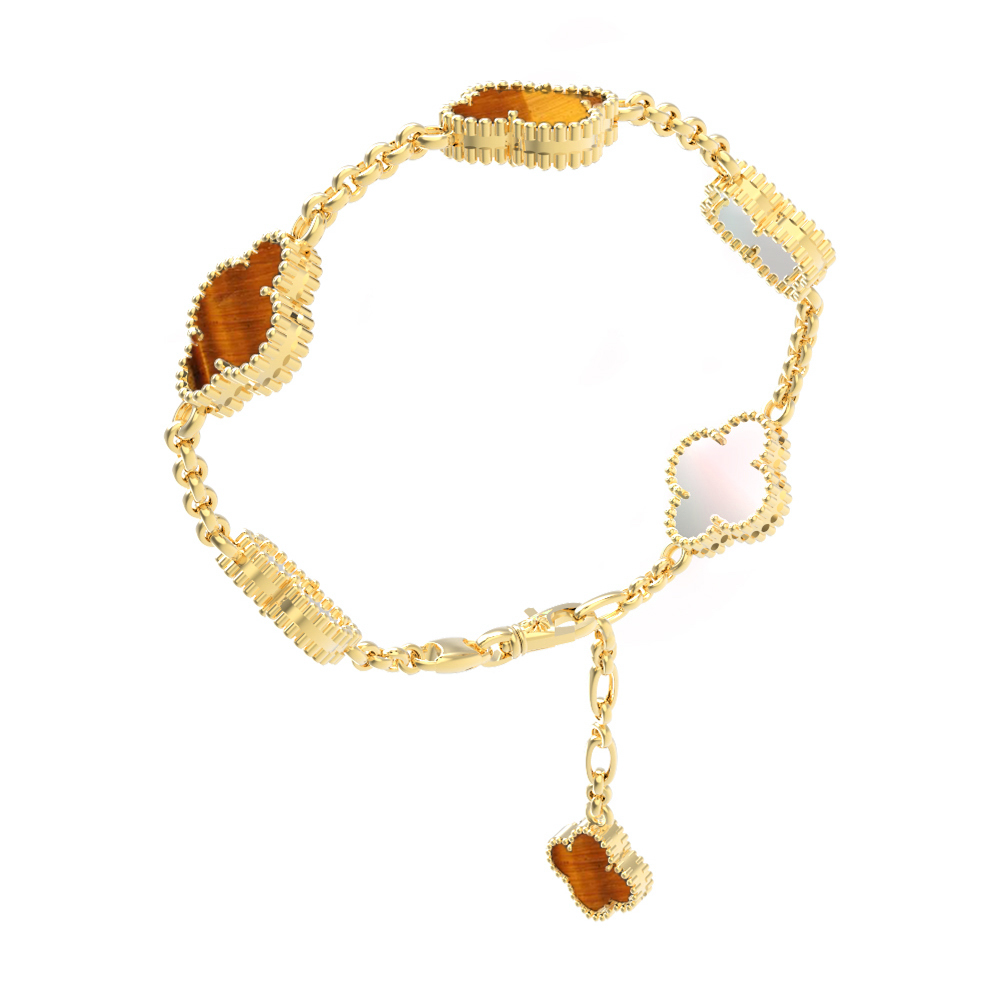 Браслет из лимонного золота c тигровым глазом и перламутром